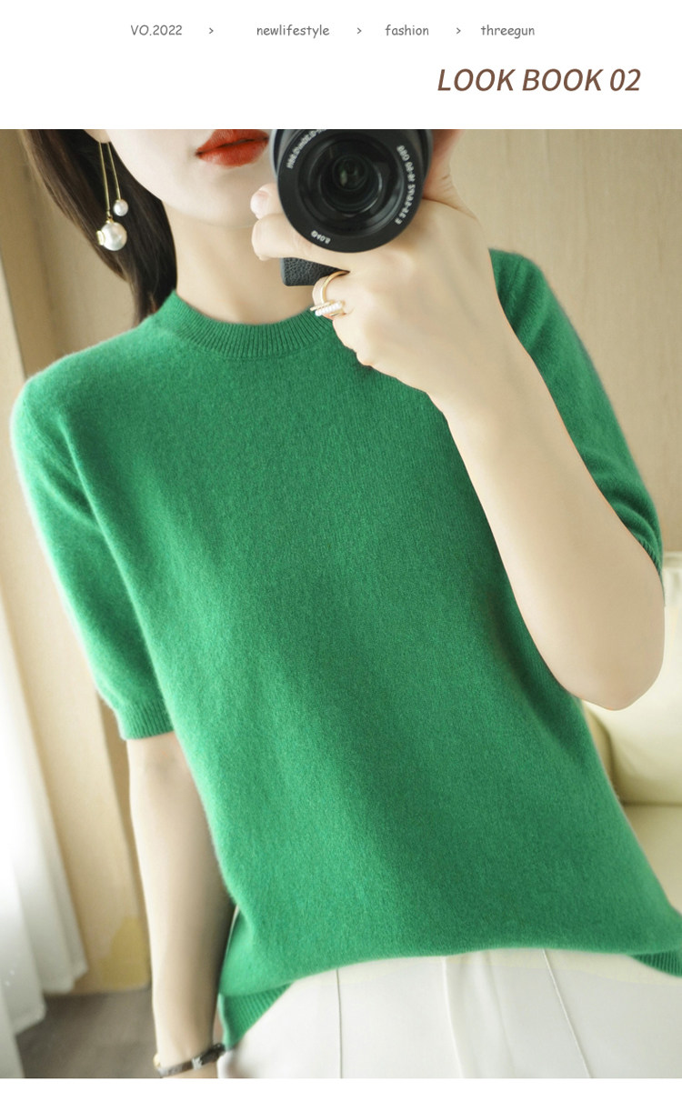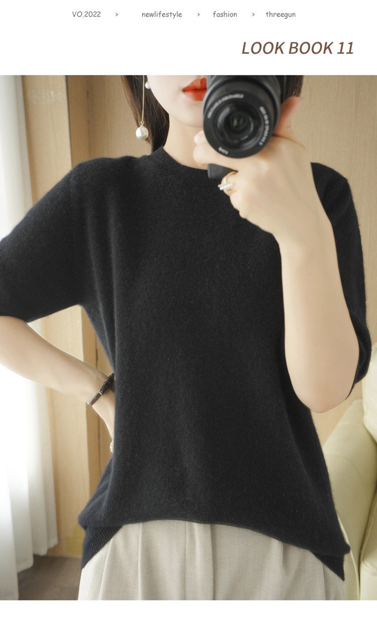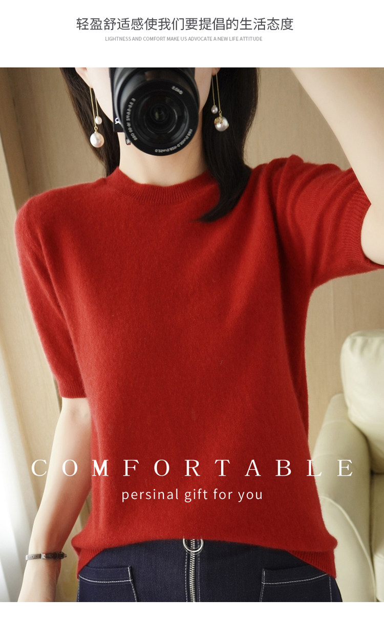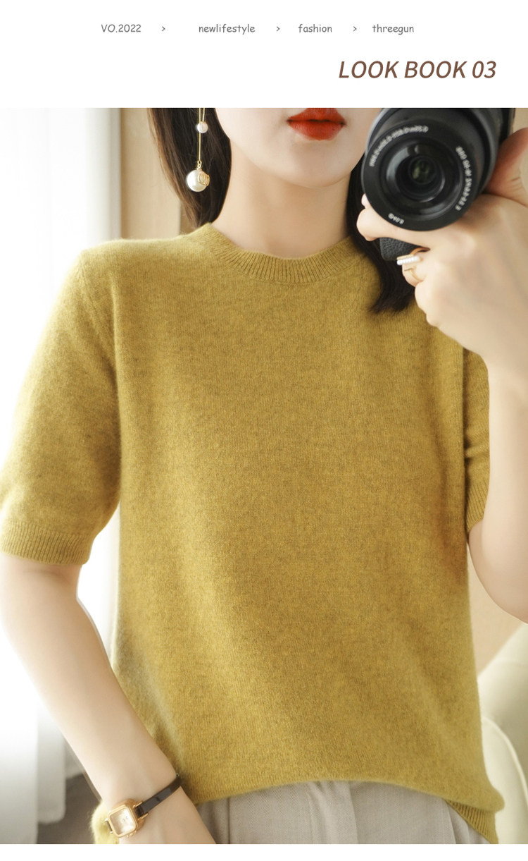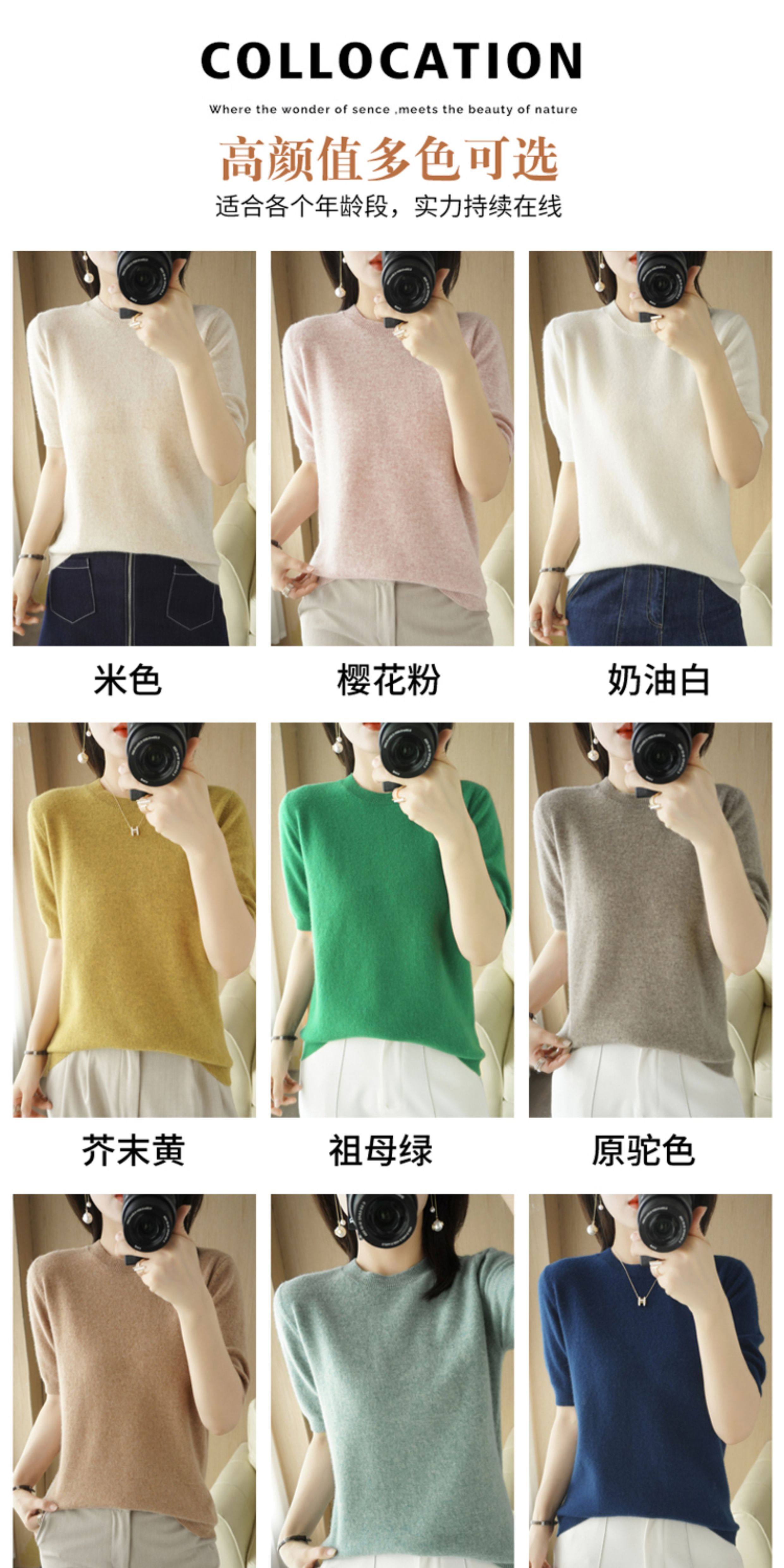 Весенний шерстяной свитер с круглым воротником, короткая базовая приятная телу трикотажная тонкая кашемировая рубашка