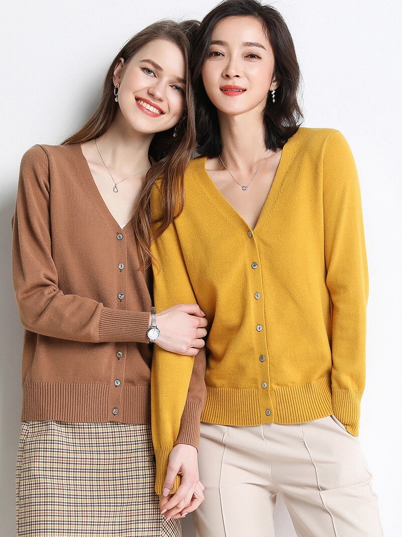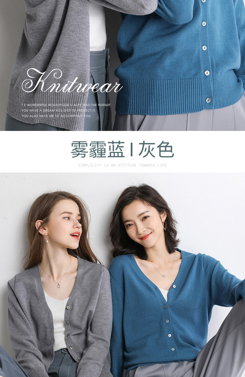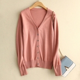 Шерстяной короткий кардиган, трикотажный лонгслив, свитер, V-образный вырез, в корейском стиле