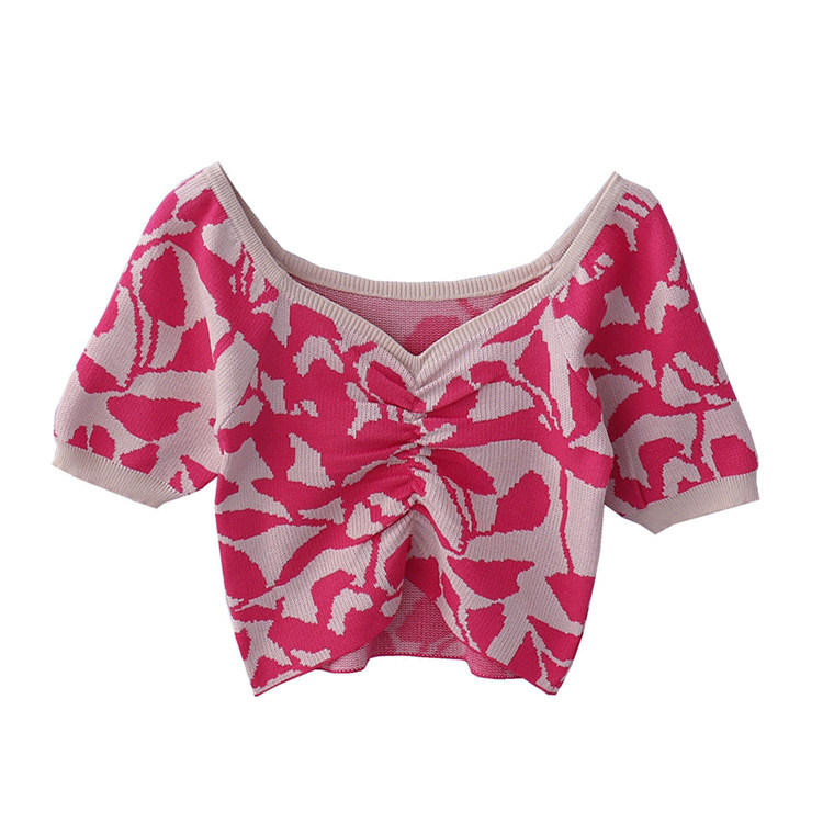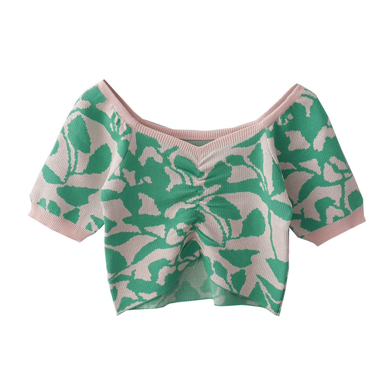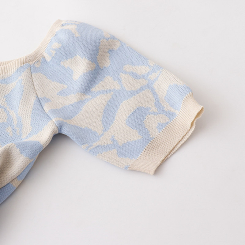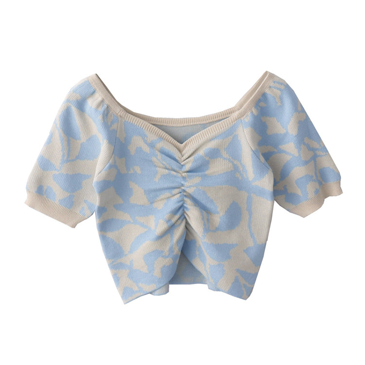 Трикотажный летний короткий свитер, рукава фонарики