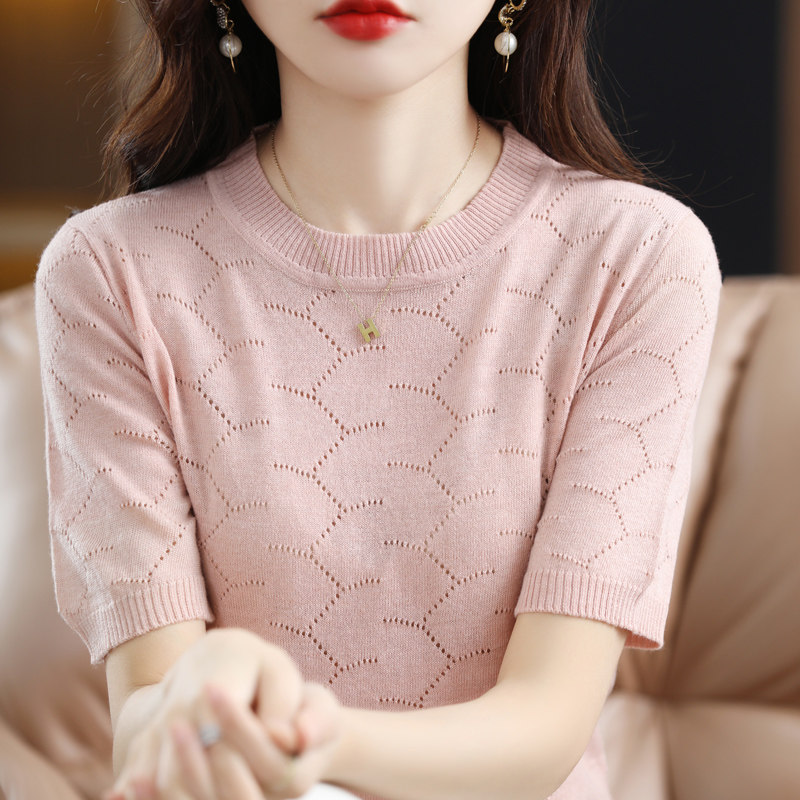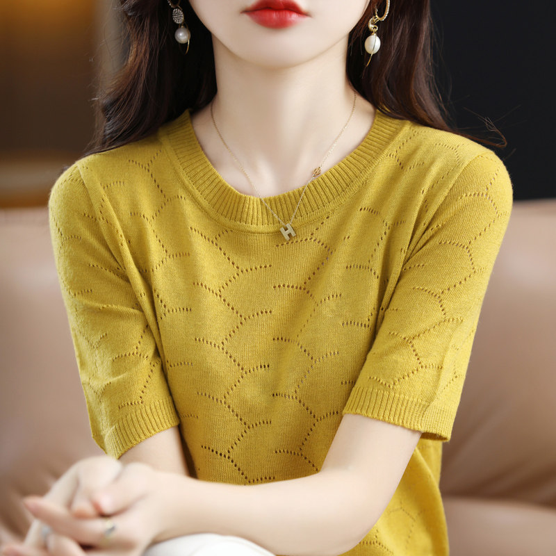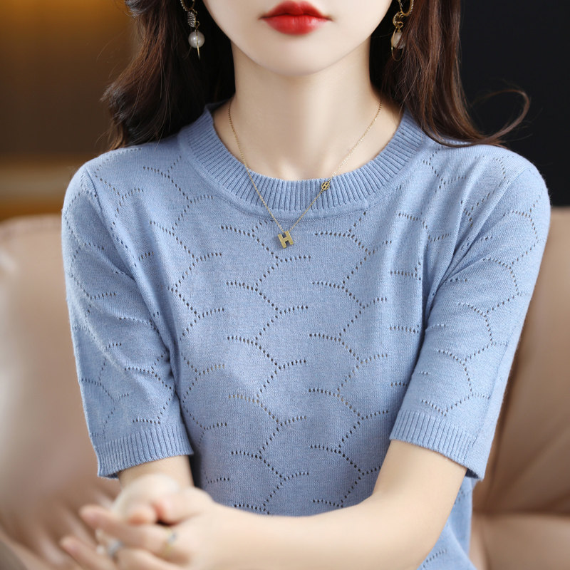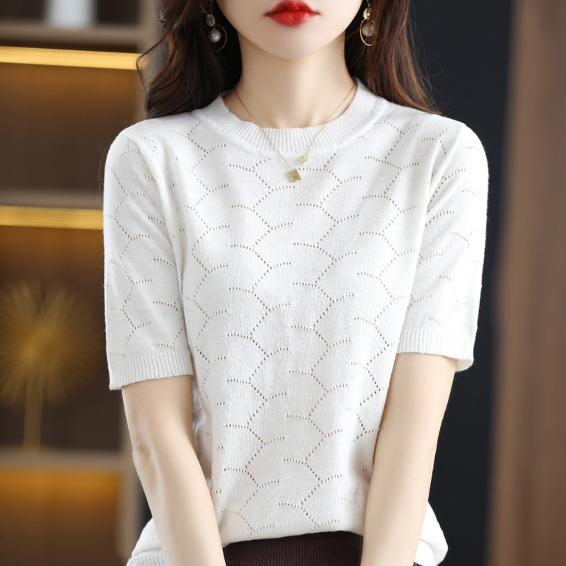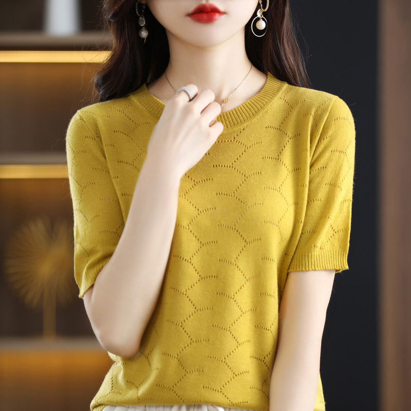 Модная шерстяная летняя базовая приятная телу футболка с коротким рукавом с круглым воротником
