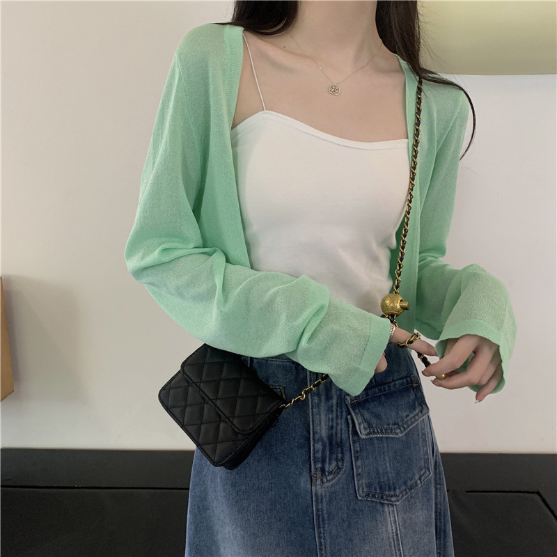 Трикотажный летний дизайнерский кардиган, тренд сезона, оверсайз, защита от солнца