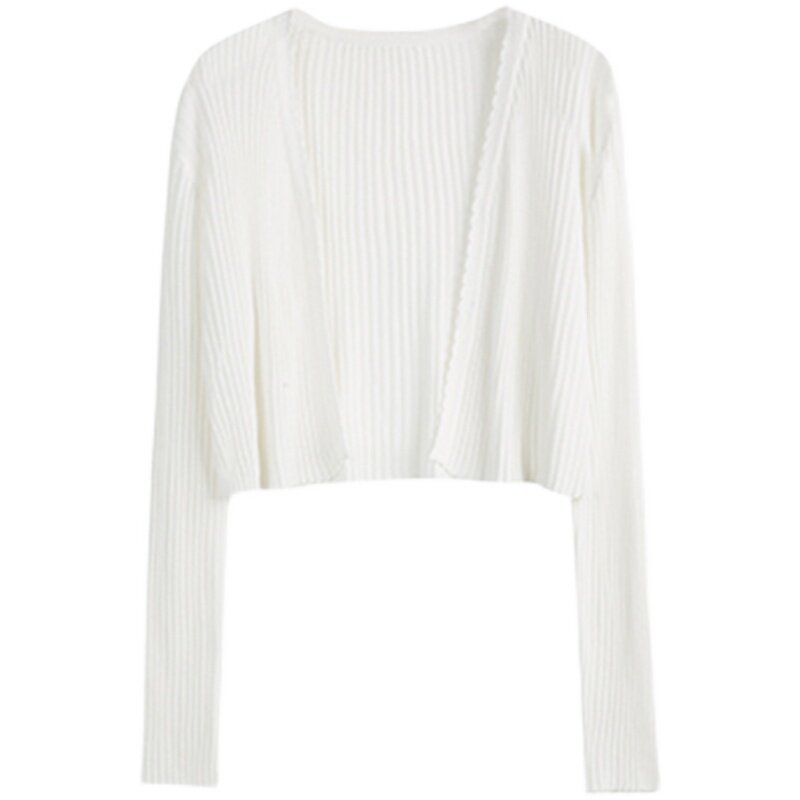 Белый шелковый весенний кардиган, летняя куртка, тонкая накидка, короткий лонгслив, защита от солнца