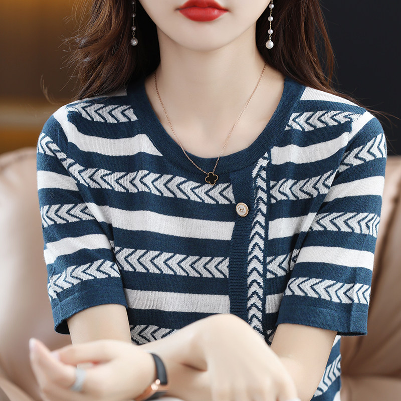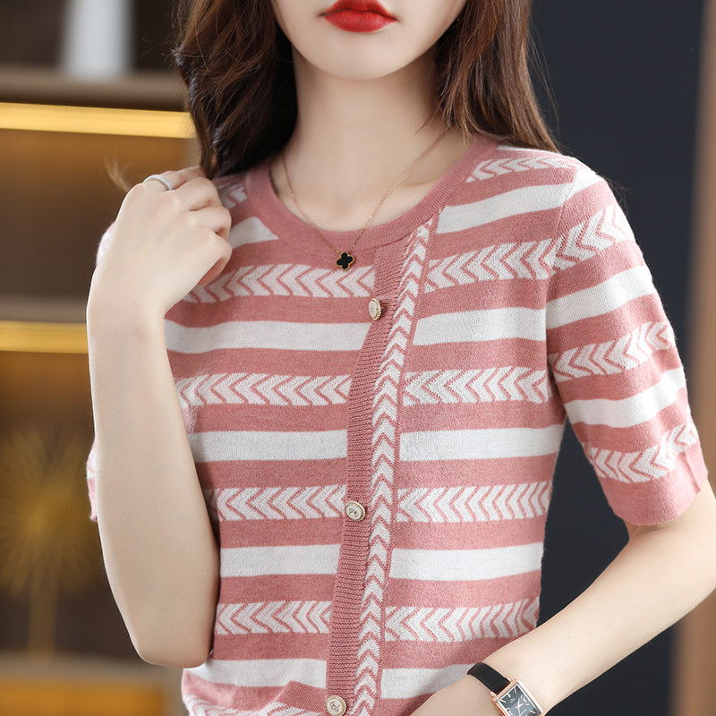 Трикотажная хлопковая летняя модная футболка с коротким рукавом с круглым воротником, из хлопка и льна