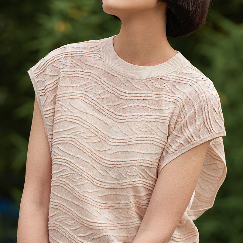 [Трансляция Ola] вещание летние темпераменты круглой шеи -of -shiplowing o -типа волнистые волнистые жилетки женский жилет Ddp2sd4237