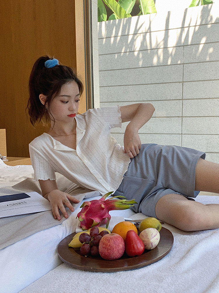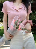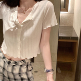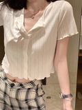 Тонкий трикотажный короткий кардиган, футболка с коротким рукавом, французский стиль, высокая талия