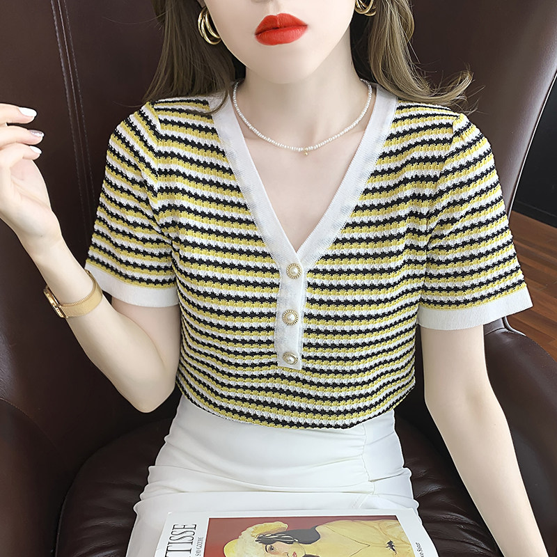 Трикотажная короткая летняя футболка, короткий рукав, подходит для подростков, коллекция 2022