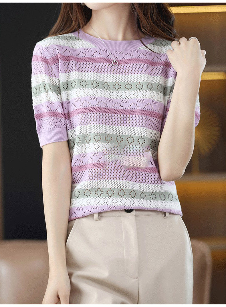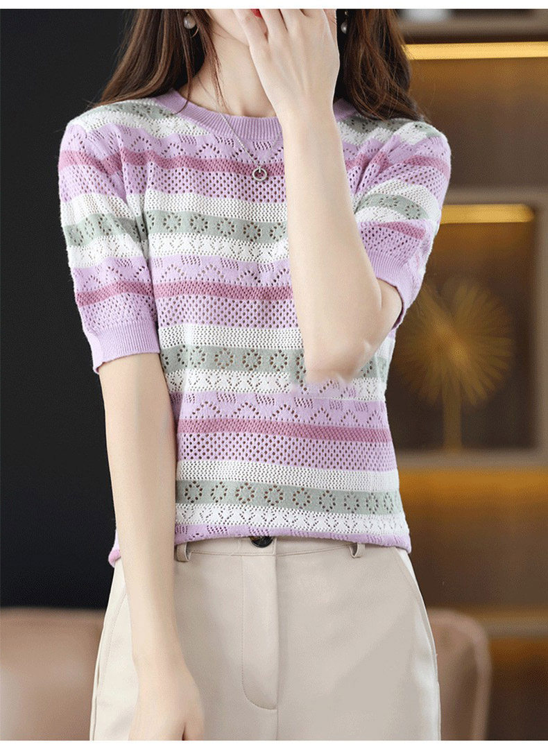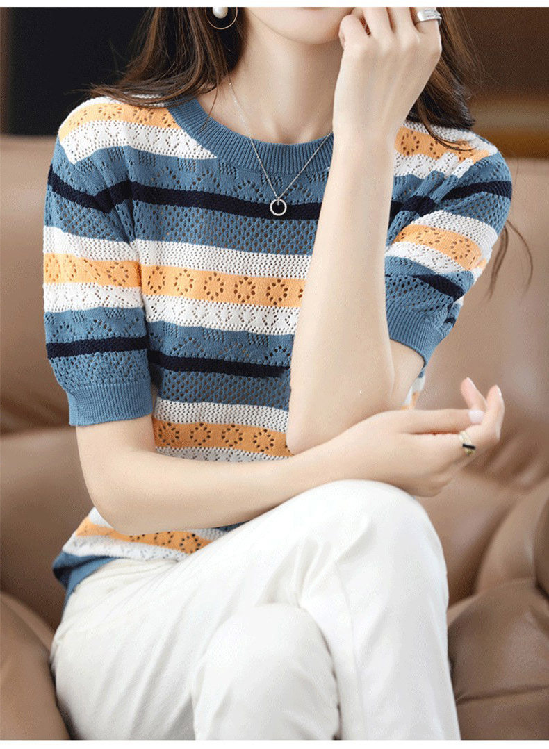 Трикотажный летний свитер для отдыха, шелковая футболка, в корейском стиле