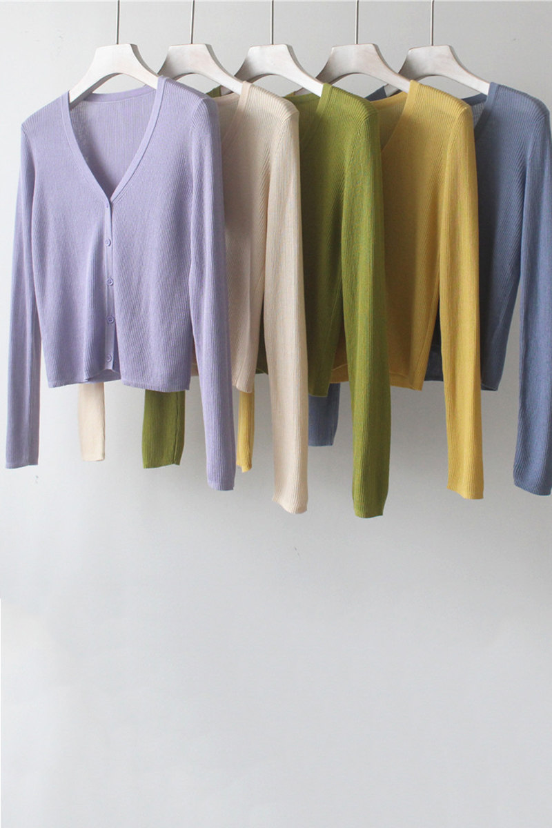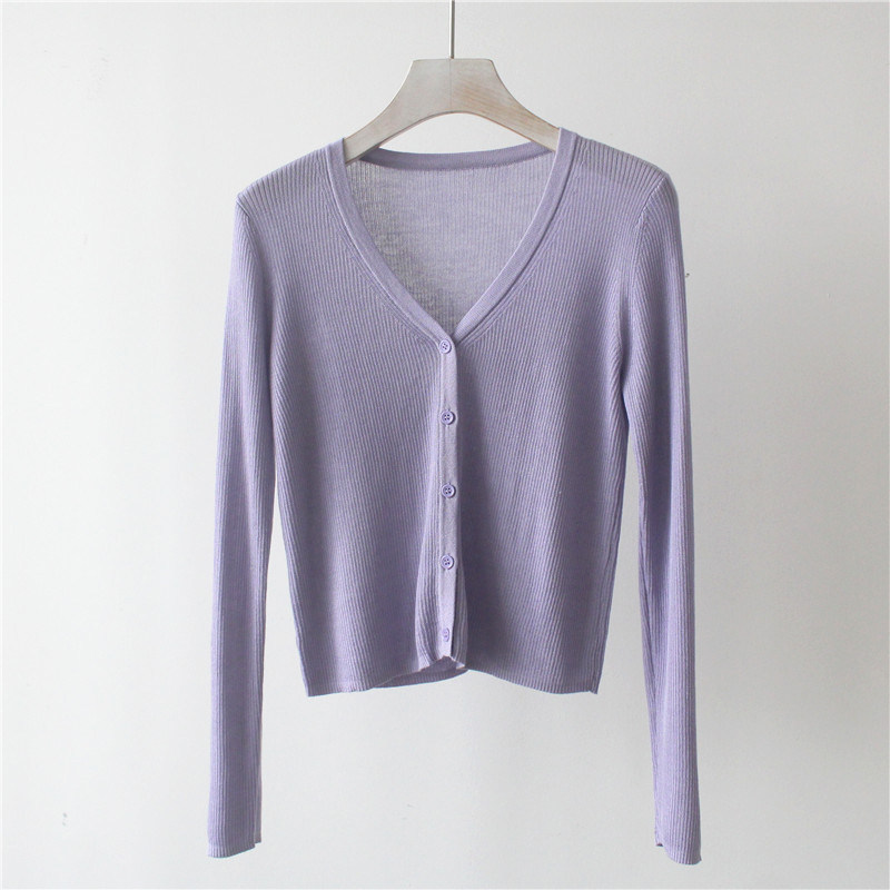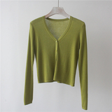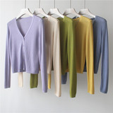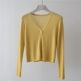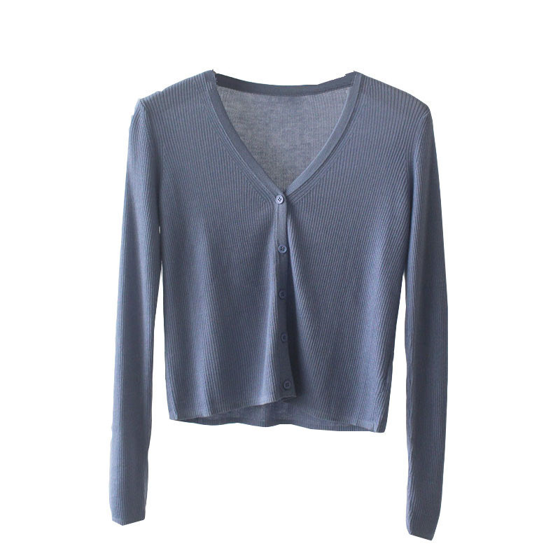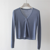 Трикотажный свитер, короткий лонгслив, кардиган, тонкая летняя рубашка, V-образный вырез, защита от солнца