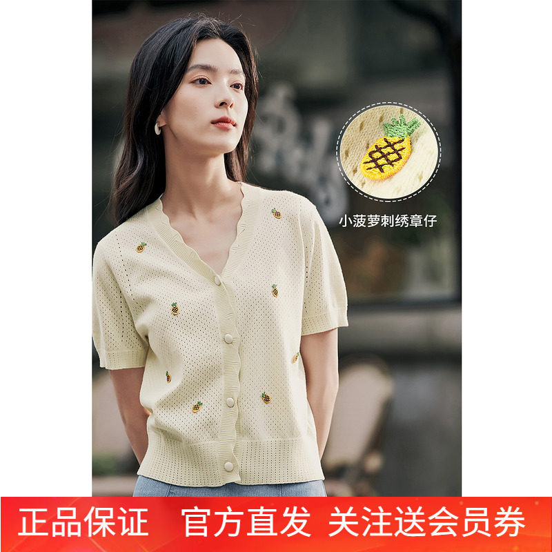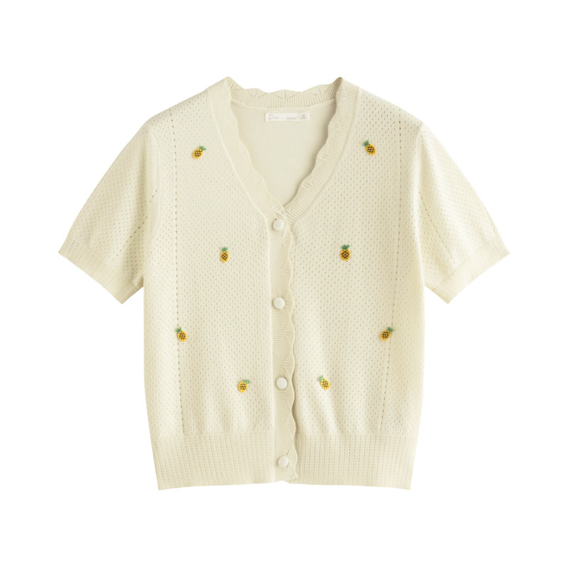 Трикотажный кардиган, летняя футболка, короткий рукав, с вышивкой