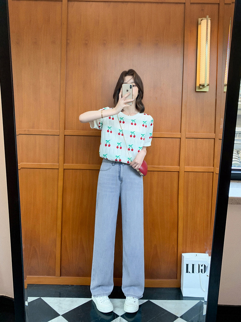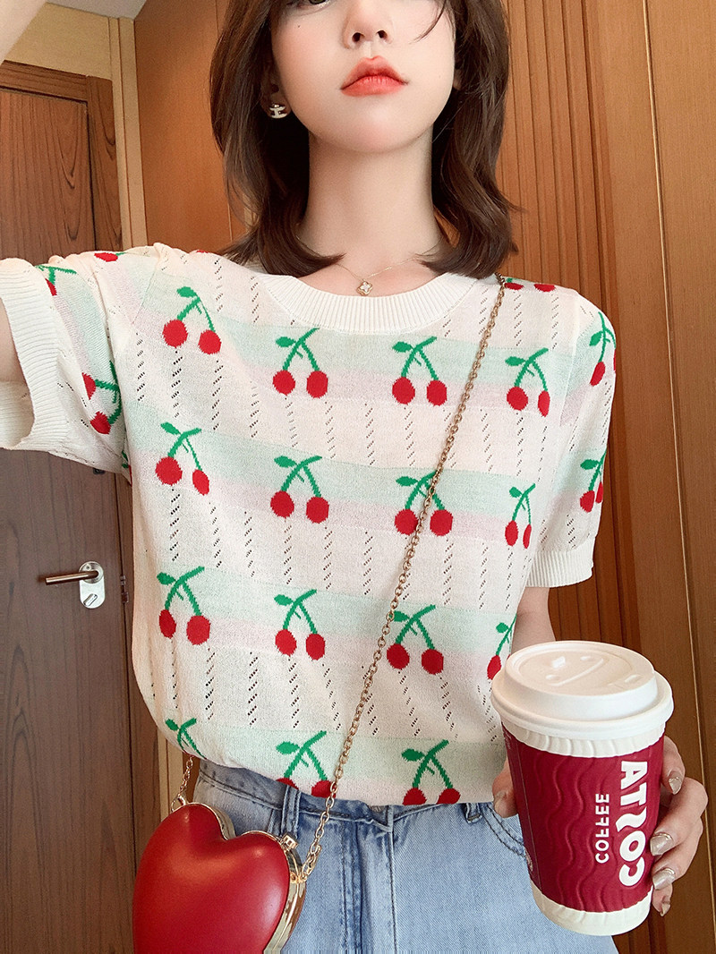 小谷粒 Летняя белая трикотажная дизайнерская футболка, трикотажный свитер, тренд сезона