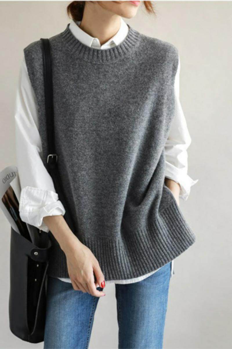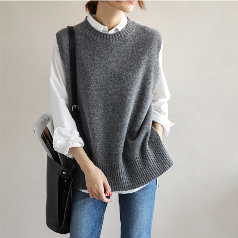 Осенний жилет, трикотажный свитер без рукавов, кардиган, свободный крой, большой размер