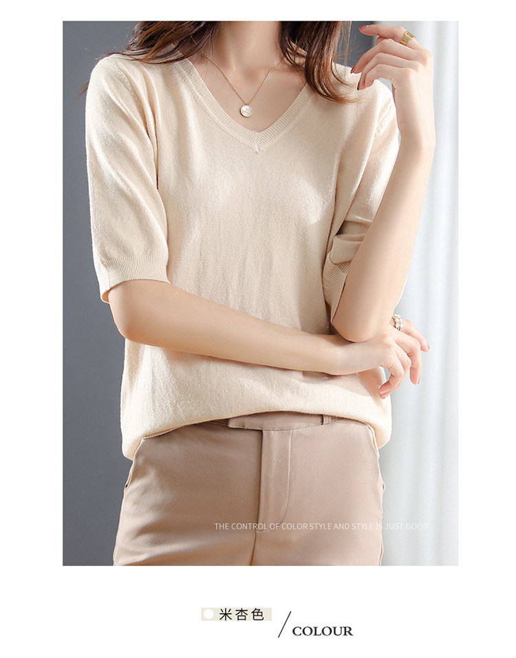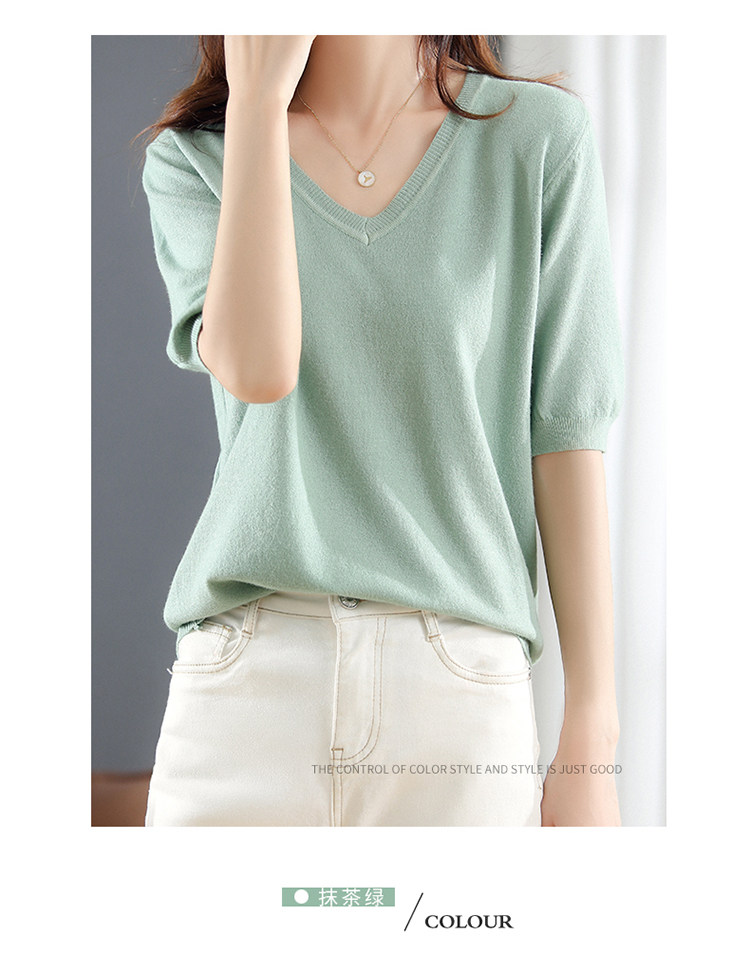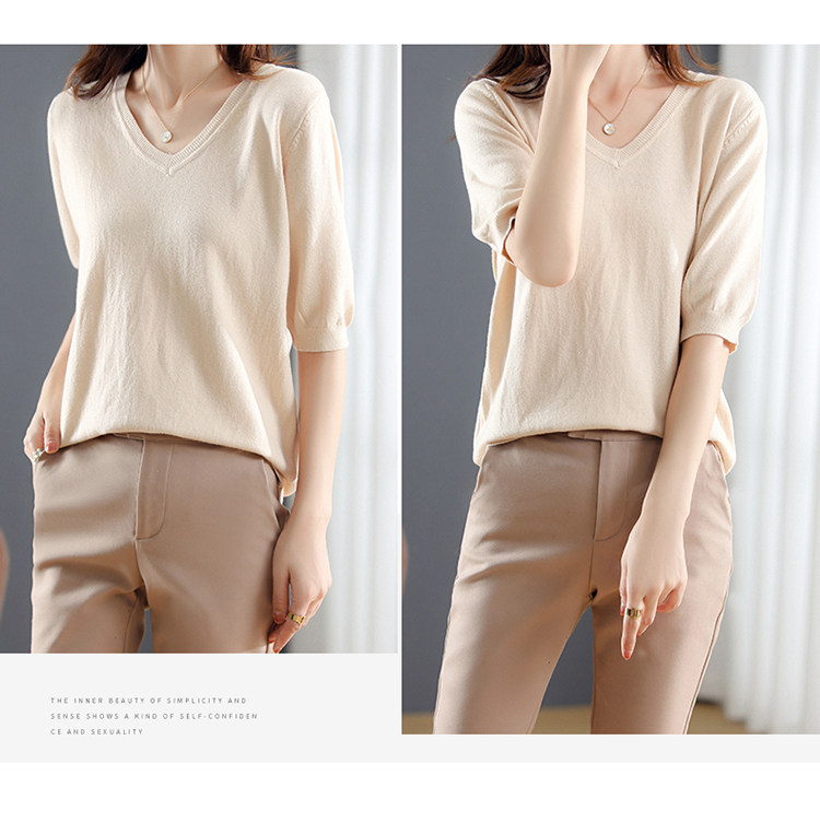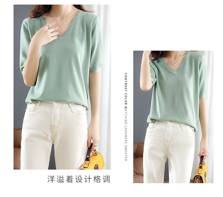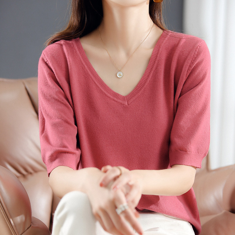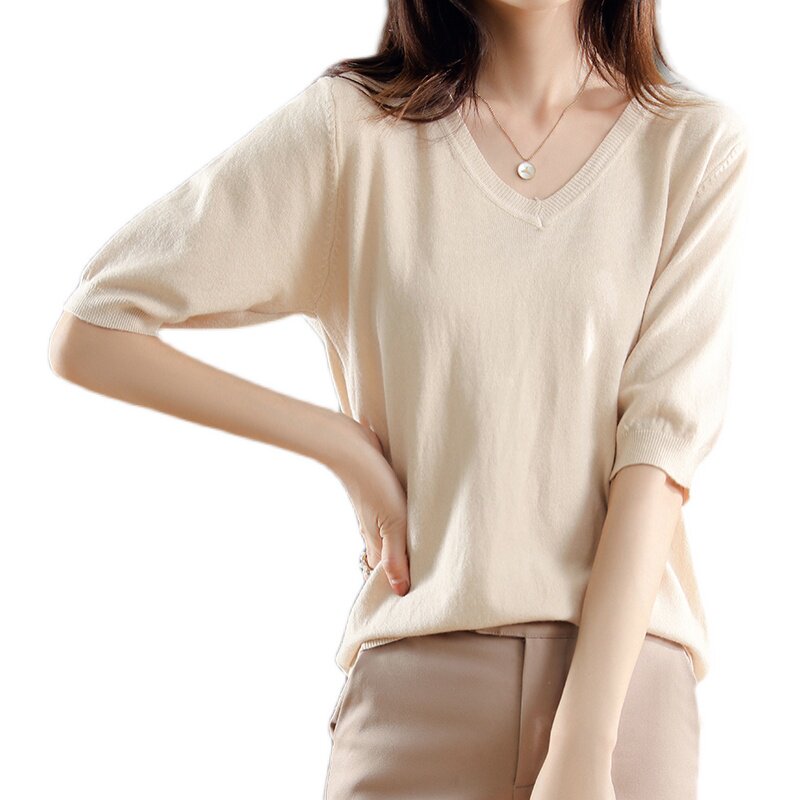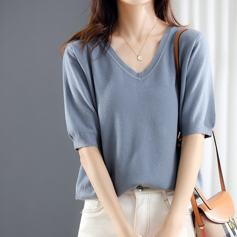 Трикотажный свитер, шерстяная футболка, V-образный вырез, оверсайз, в корейском стиле