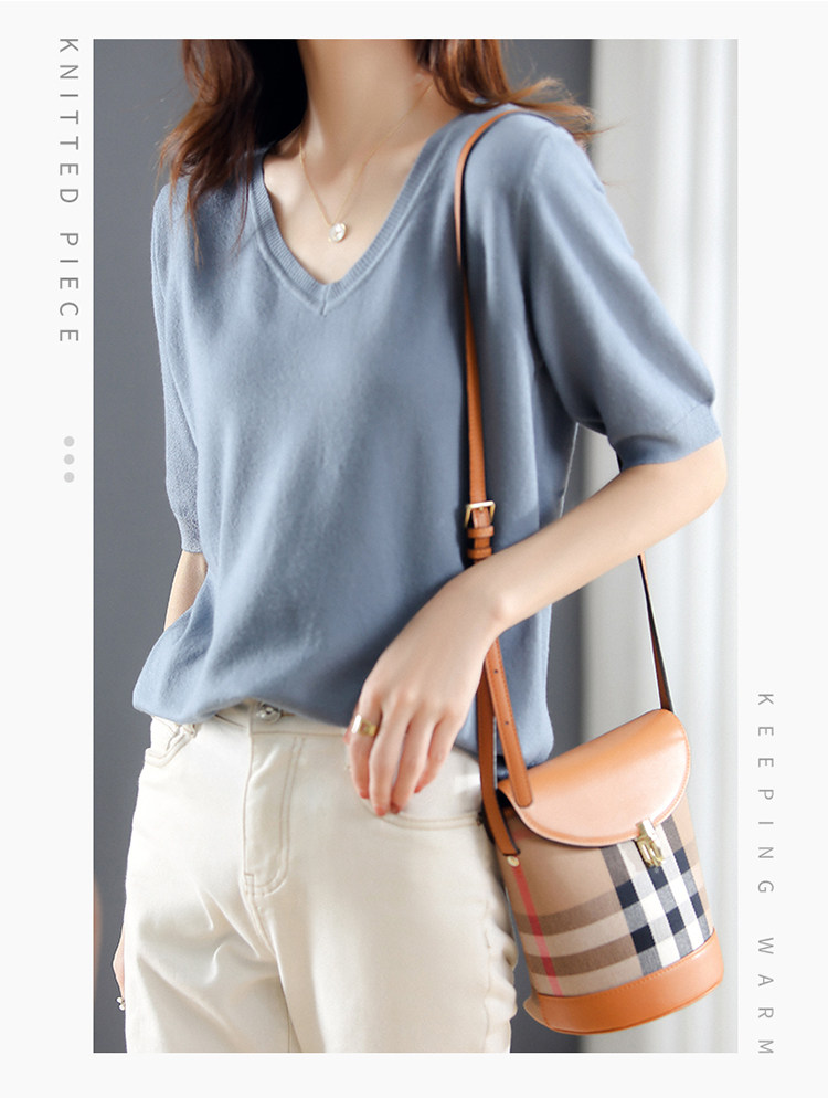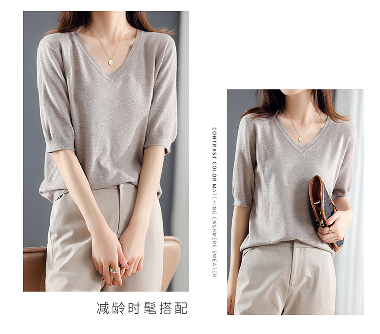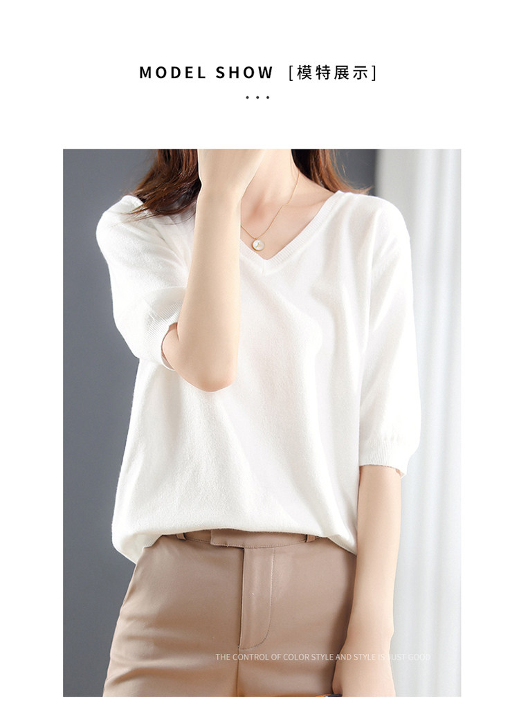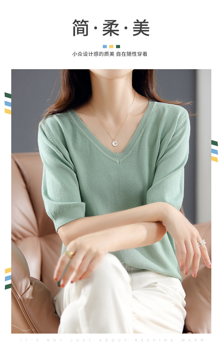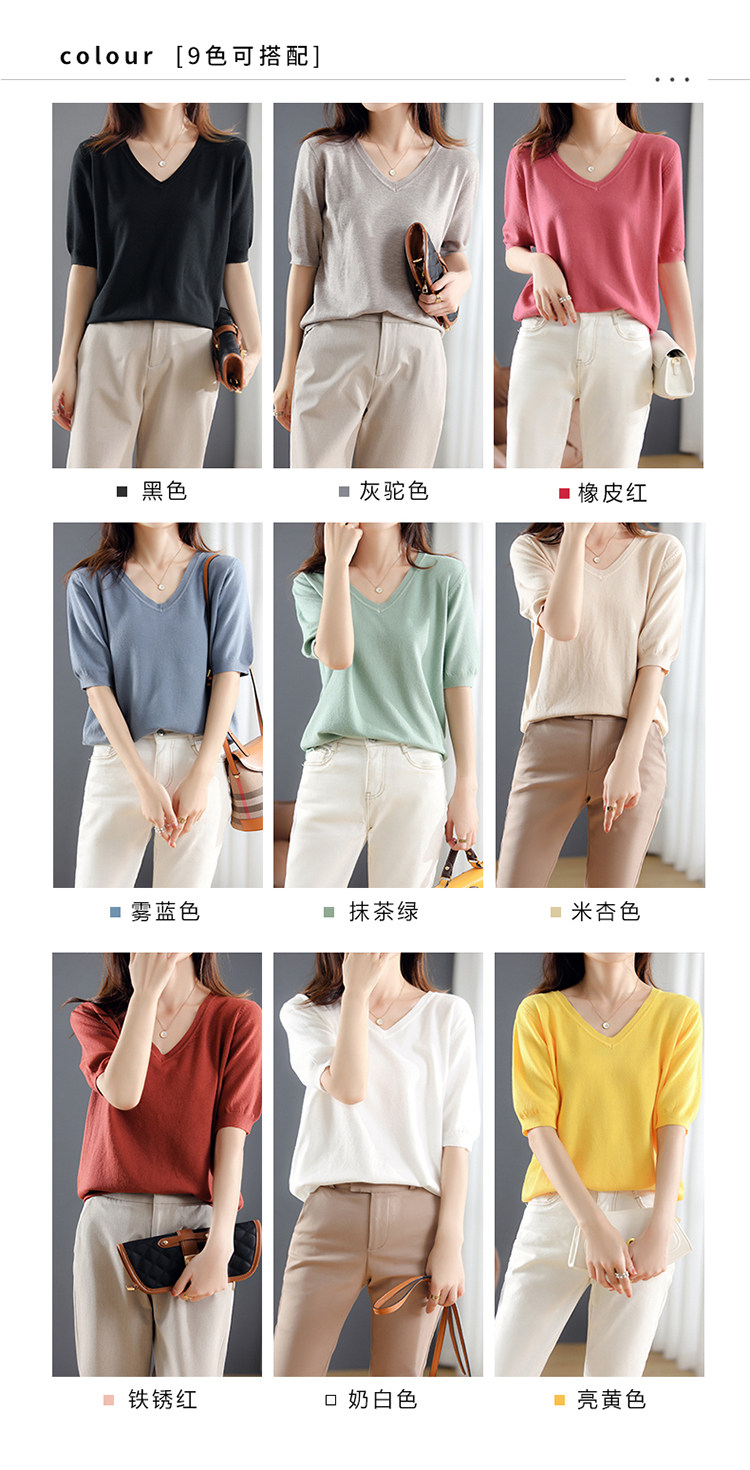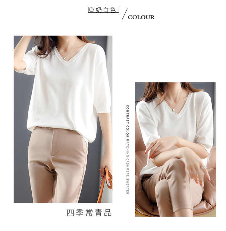 Трикотажный свитер, шерстяная футболка, V-образный вырез, оверсайз, в корейском стиле