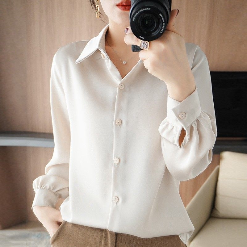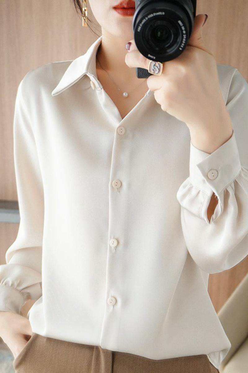 Весенняя шелковая рубашка, элитный лонгслив, тренд сезона, воротник поло