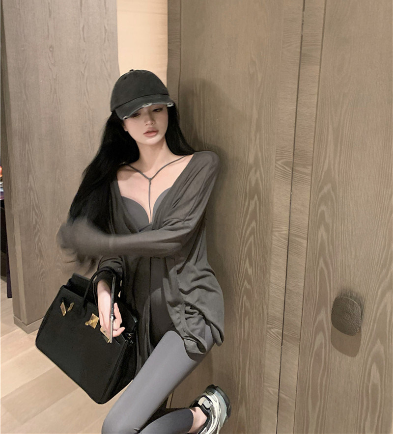 Тонкий лонгслив, осенний длинный кардиган, в корейском стиле, оверсайз, защита от солнца, средней длины