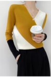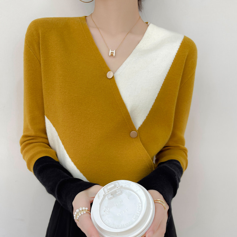 Шерстяной свитер, базовый приятный телу лонгслив, V-образный вырез