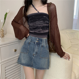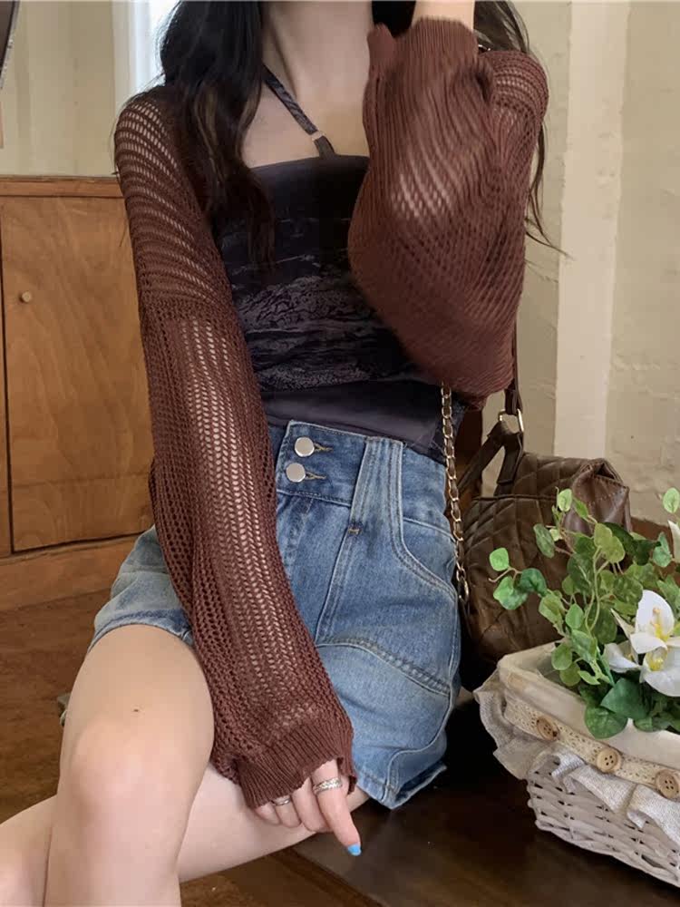 Трикотажный летний тонкий шелковый кардиган, накидка, лонгслив, куртка, эффект подтяжки
