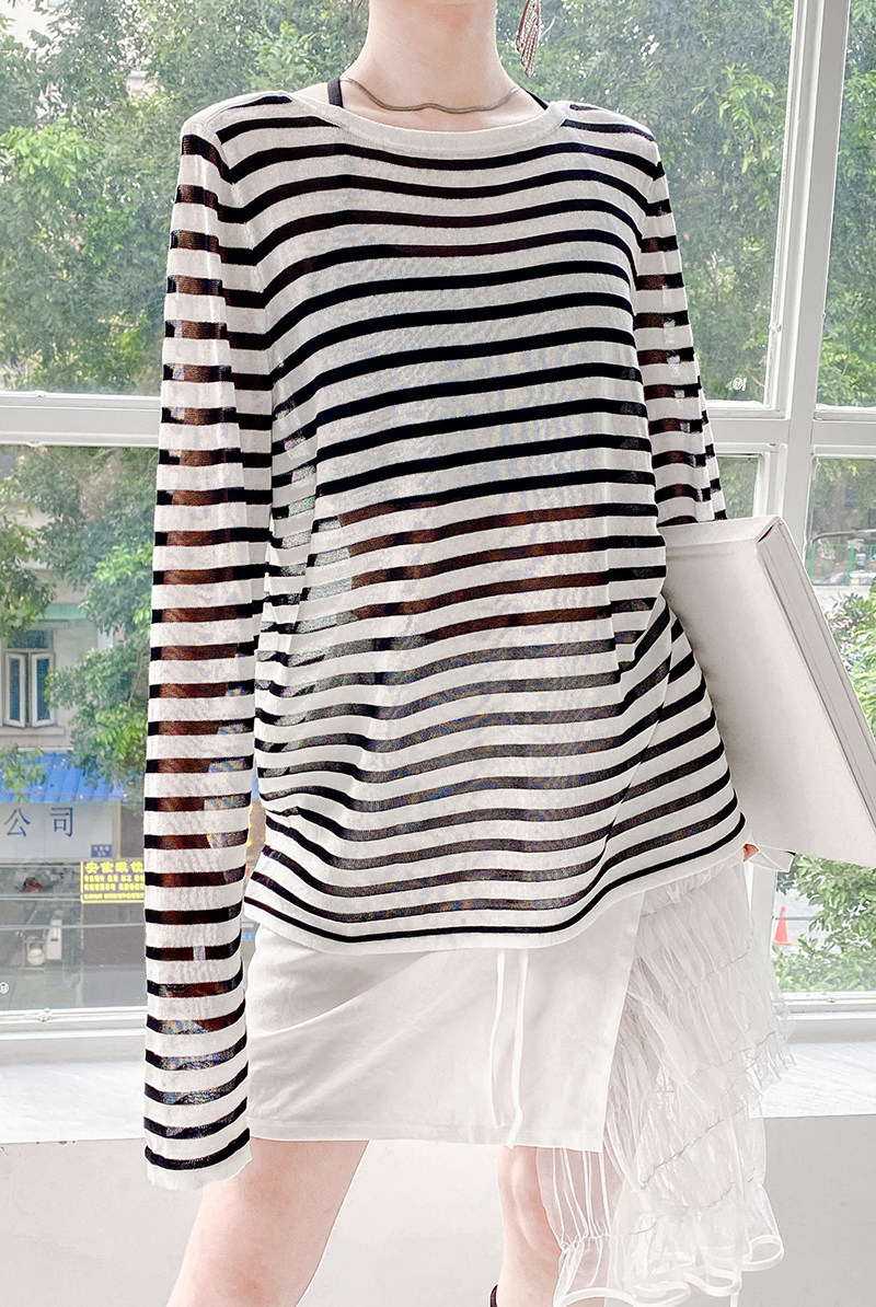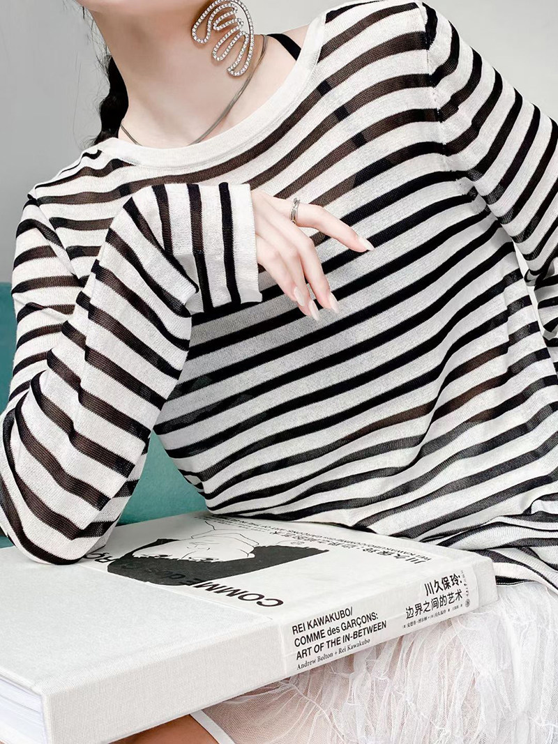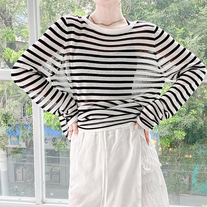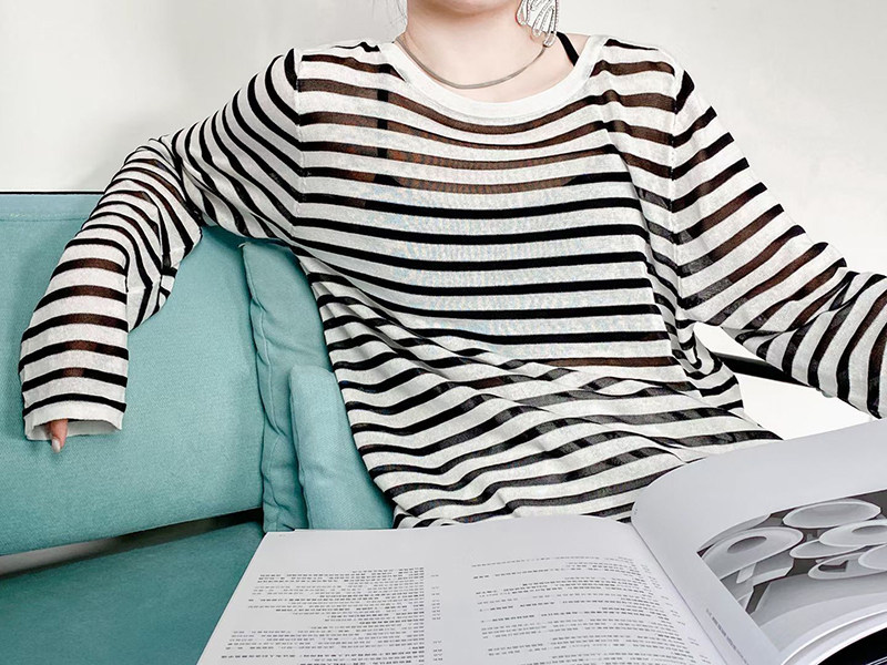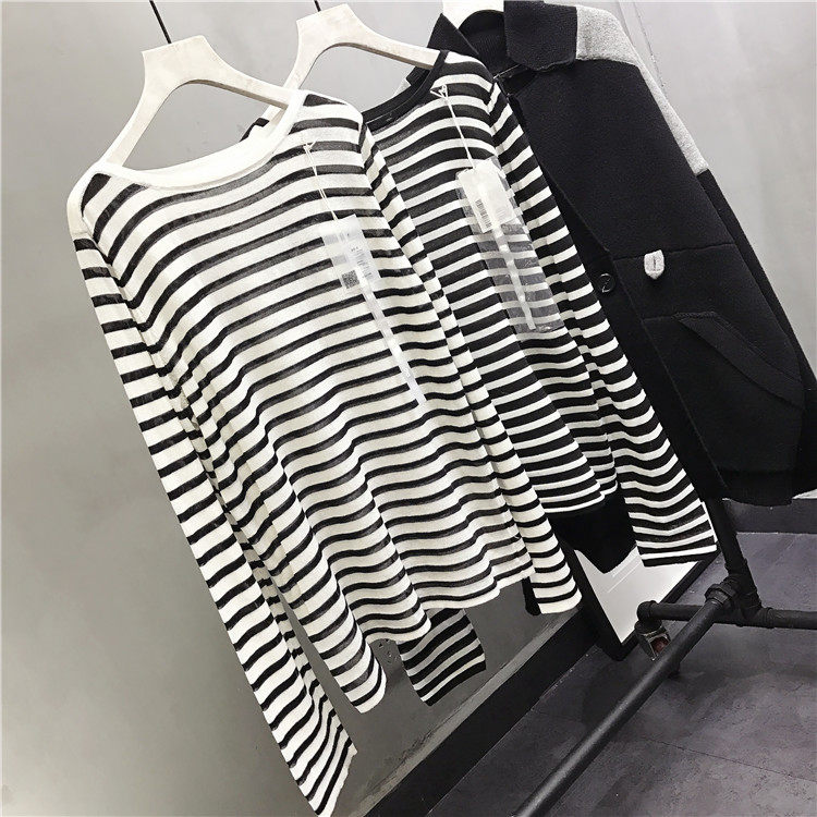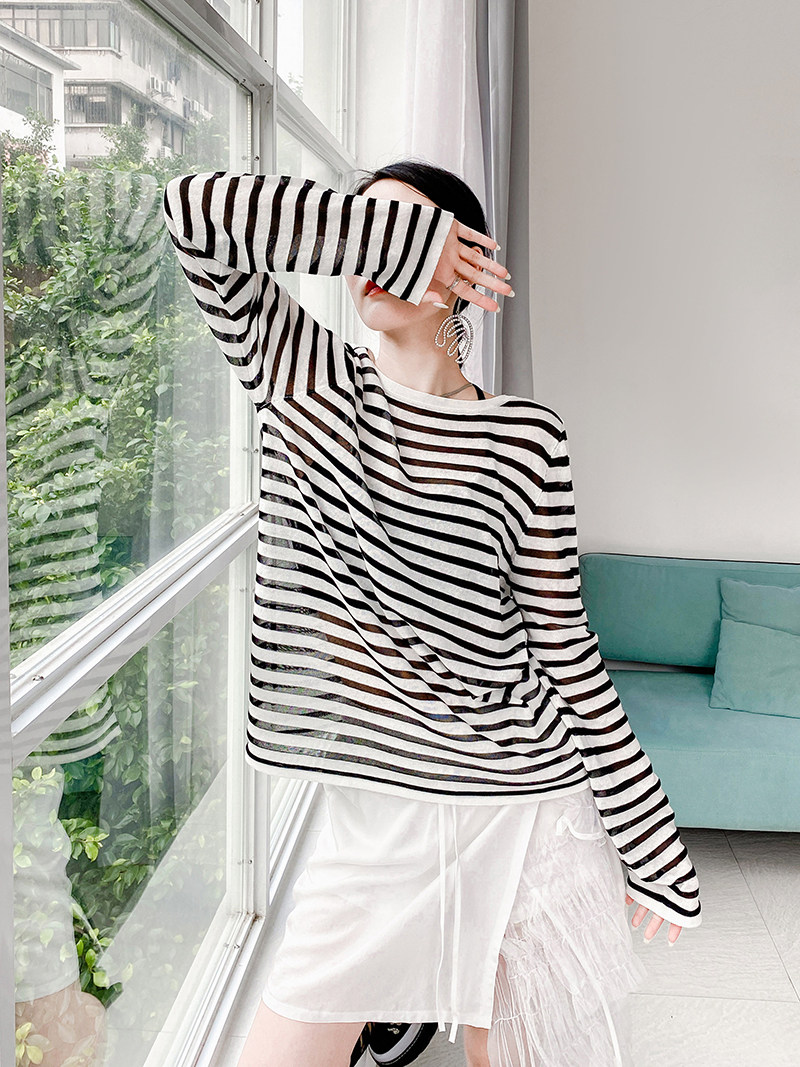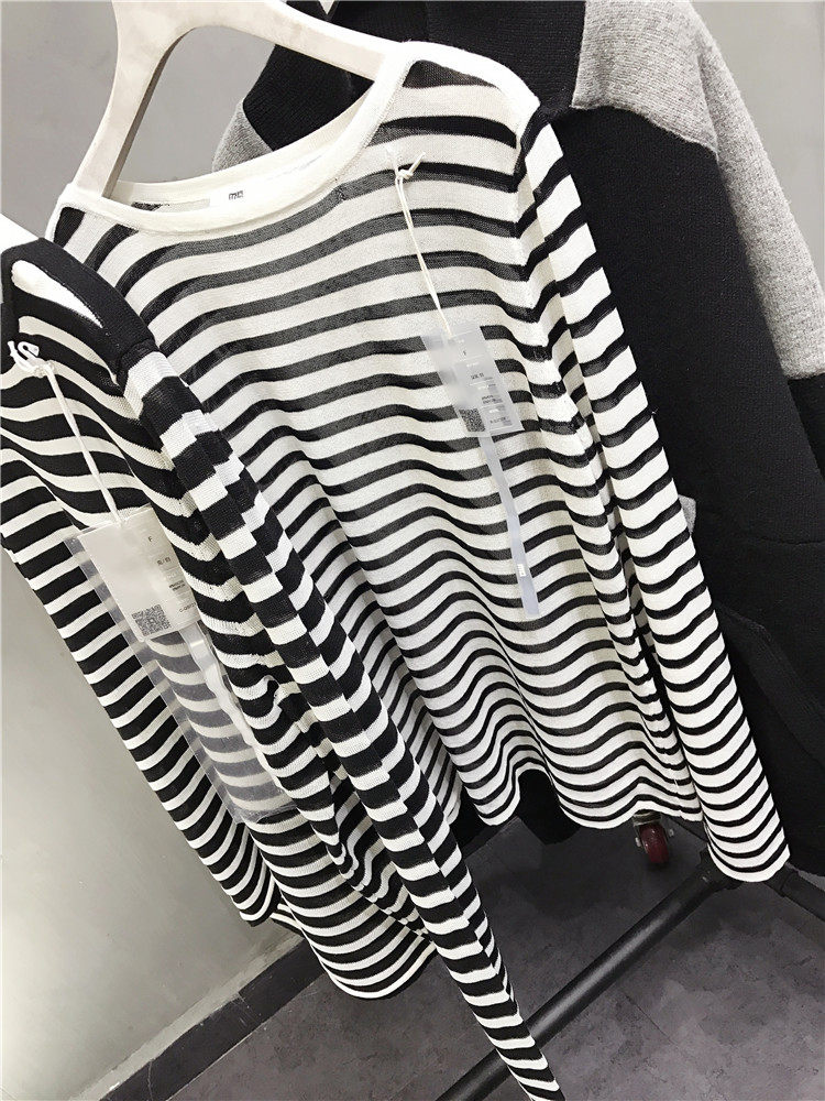 У каждого есть кусочек высококачественного полосатого свитера mq mqnf, тонкий свободный и универсальный солнцезащитный свитер 97211