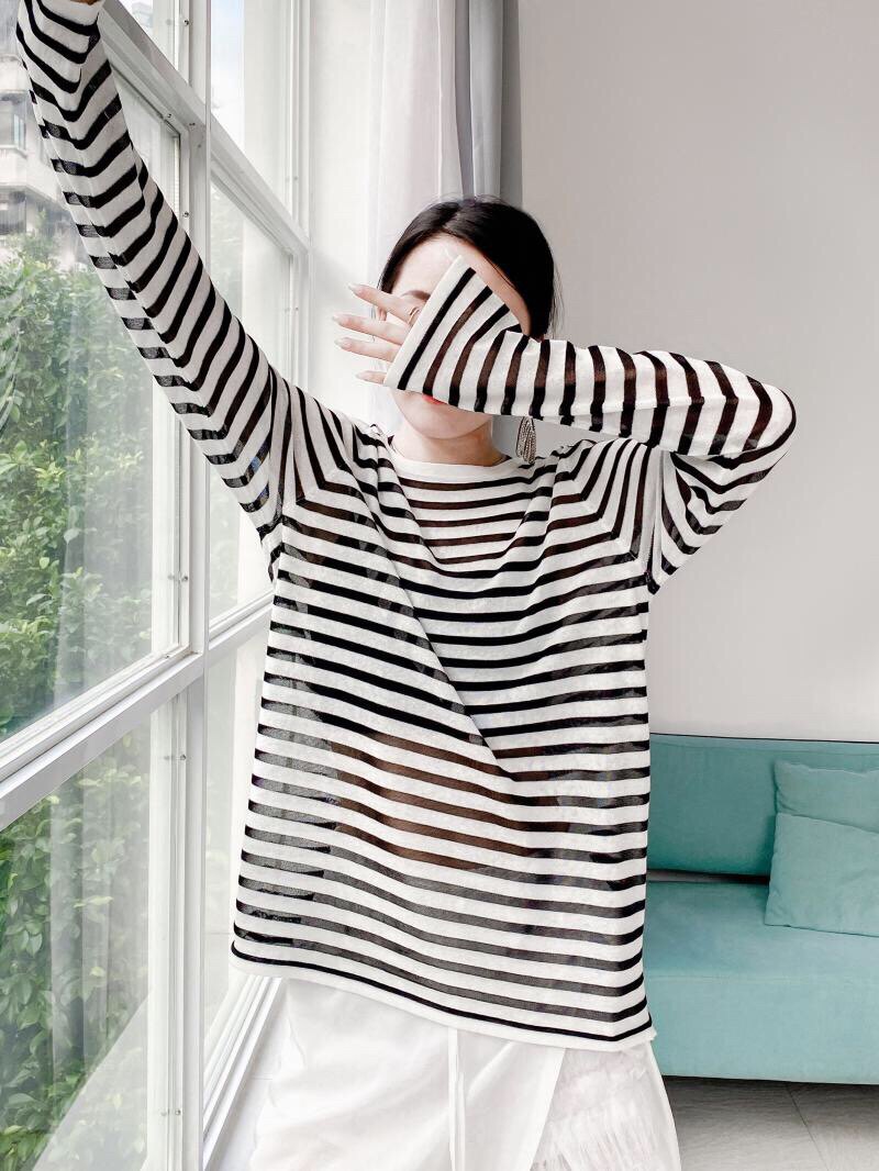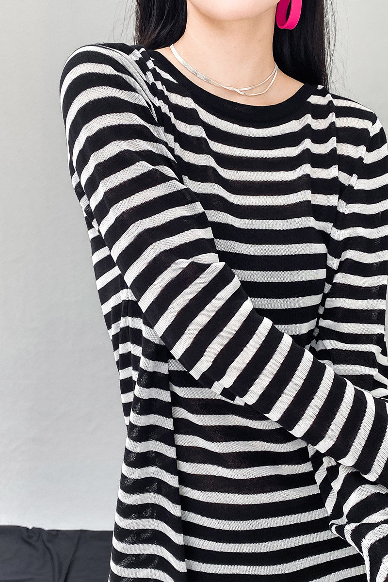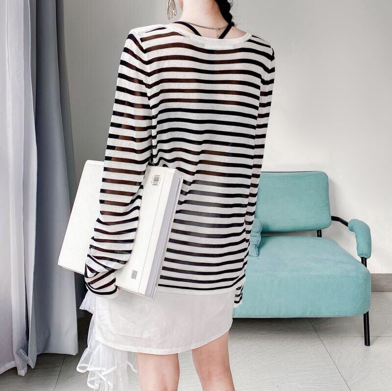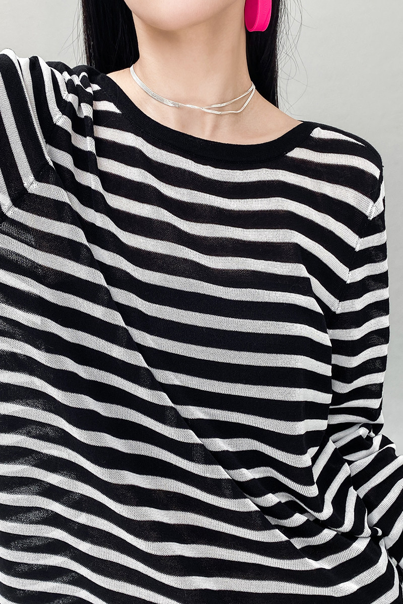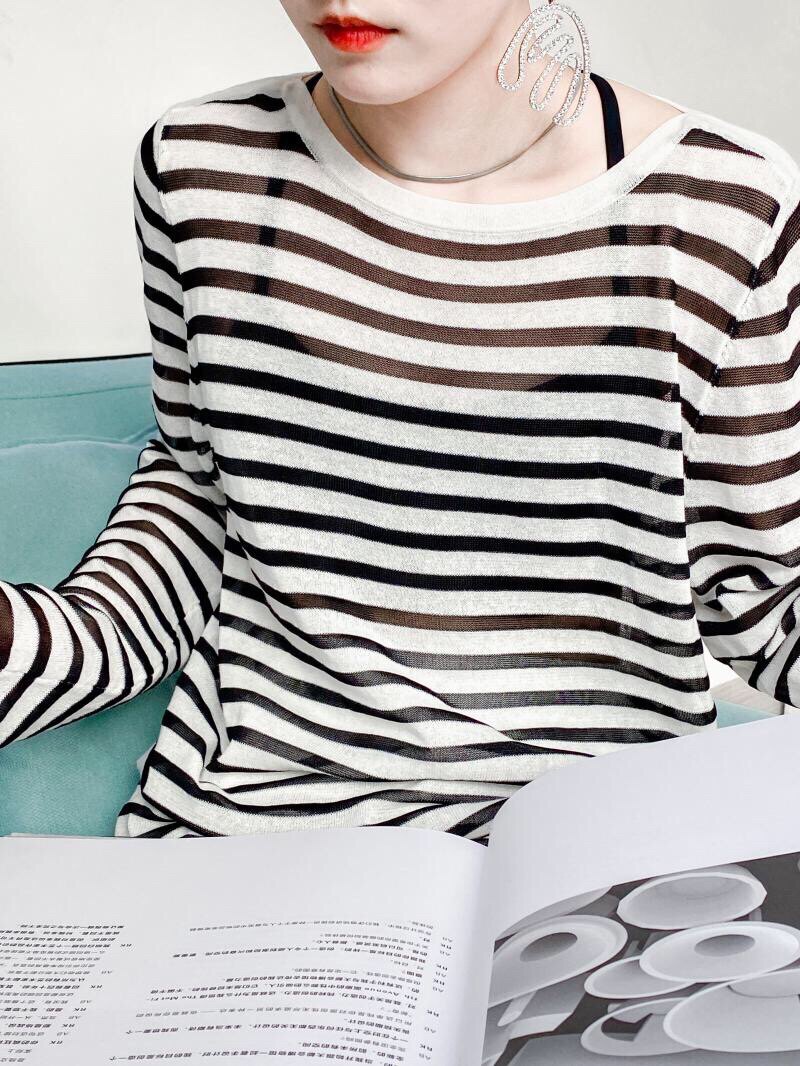 У каждого есть кусочек высококачественного полосатого свитера mq mqnf, тонкий свободный и универсальный солнцезащитный свитер 97211