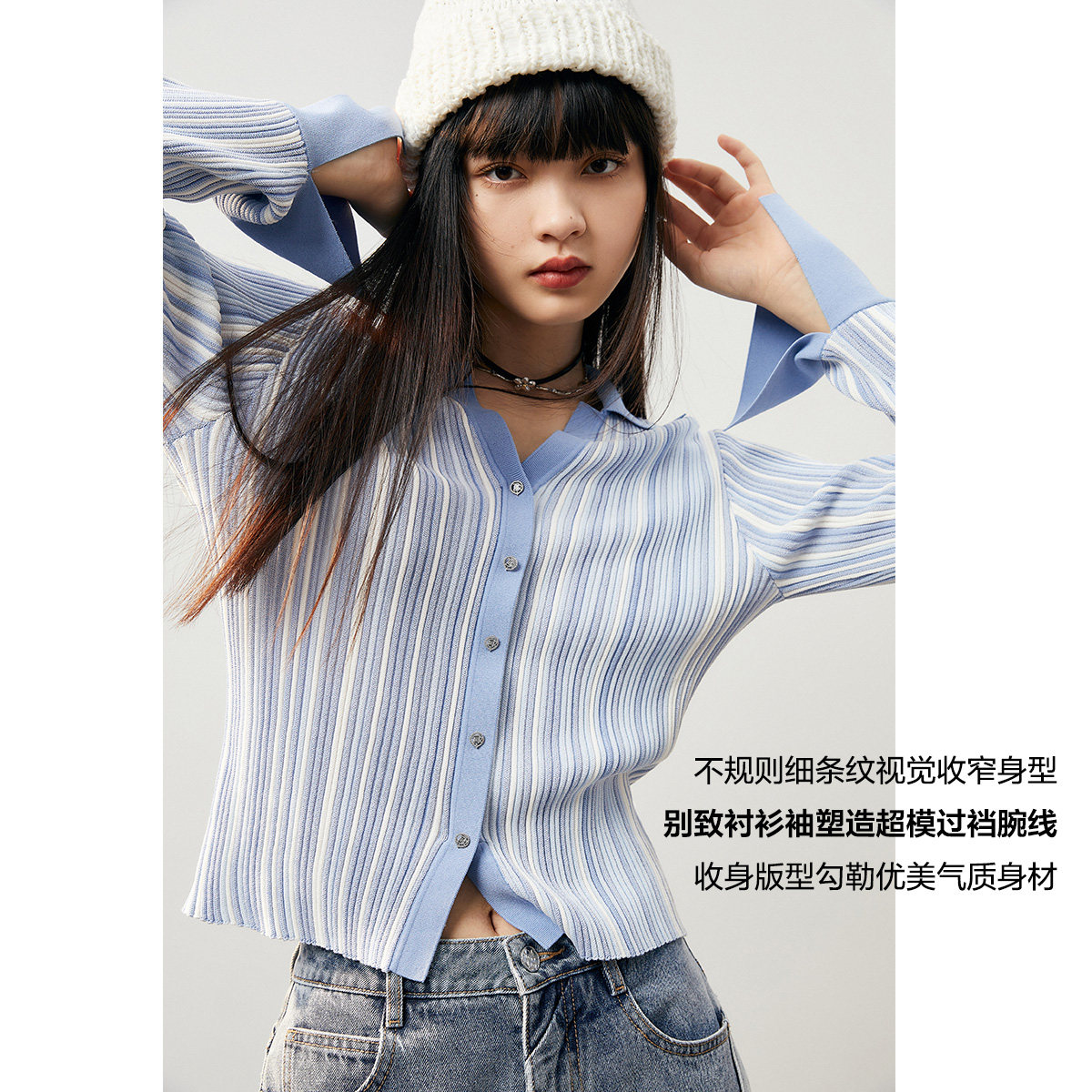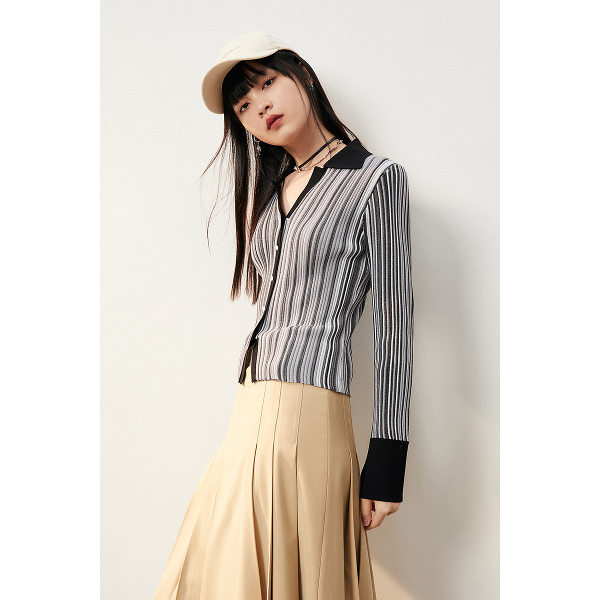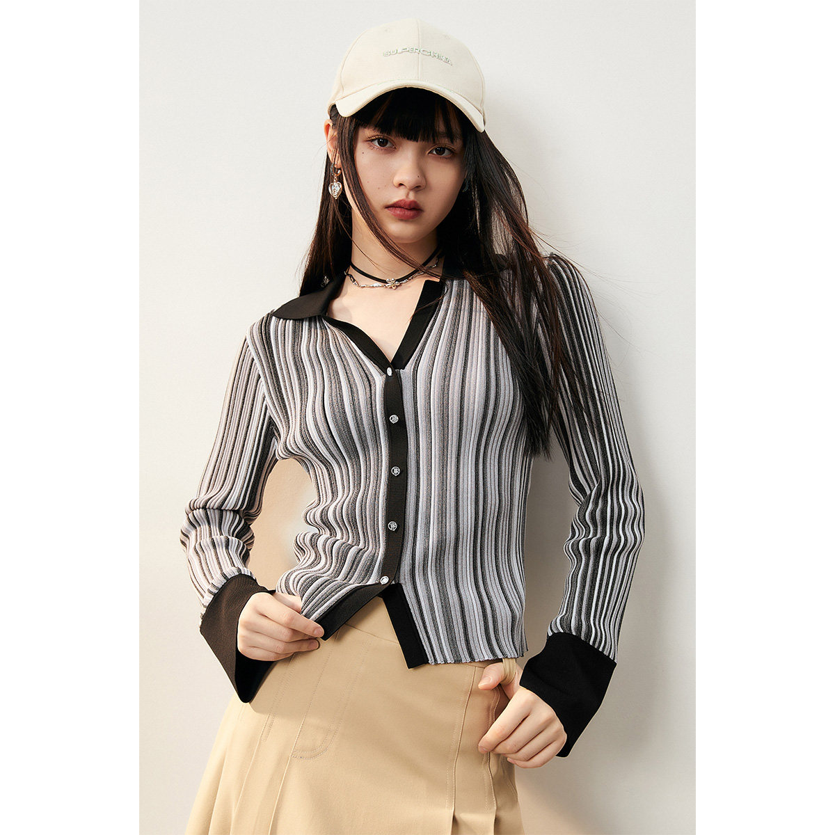 Трикотажный осенний свитер, тонкий базовый приятный телу кардиган, воротник поло, облегающий крой