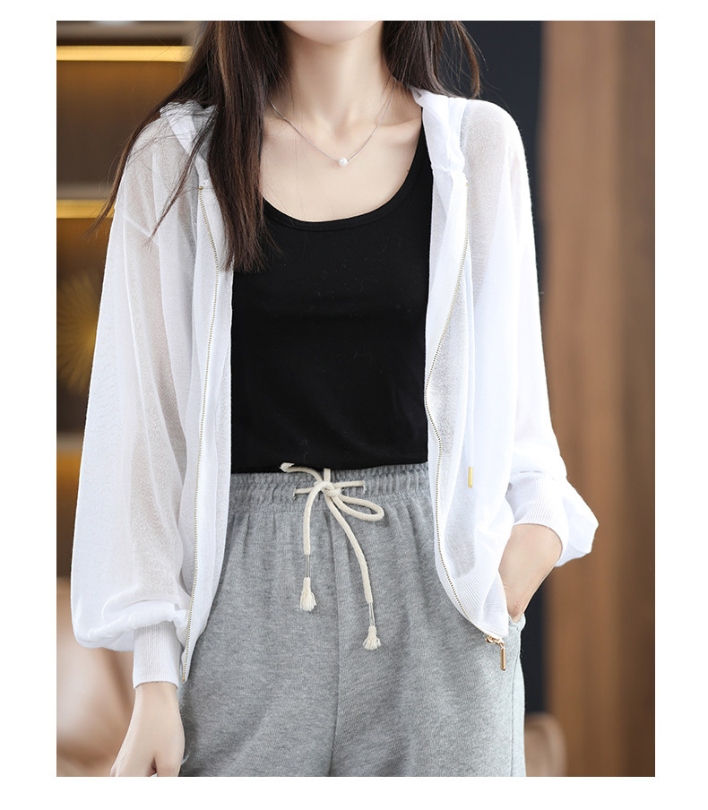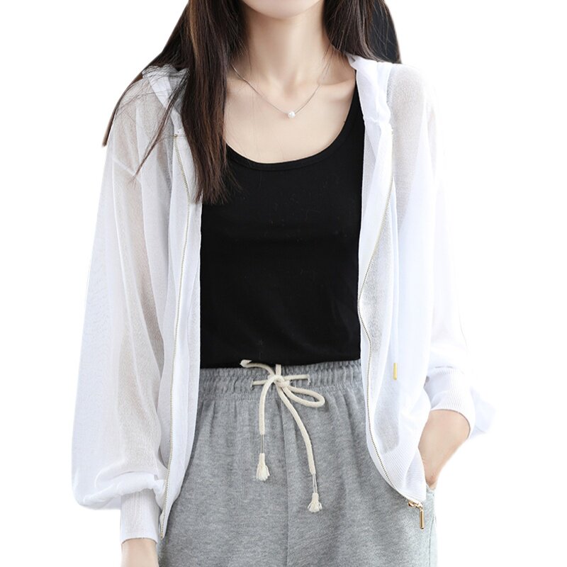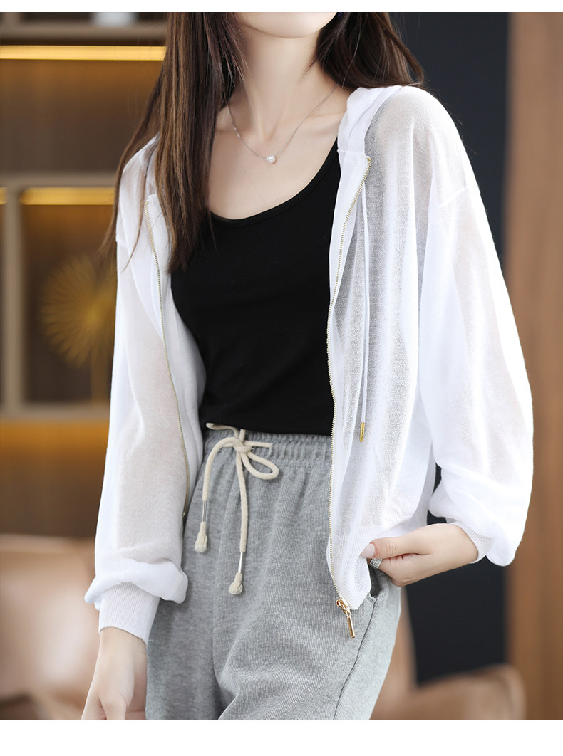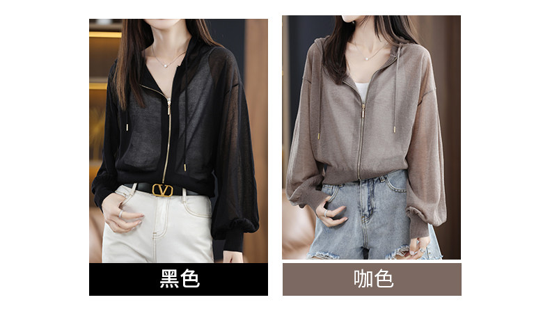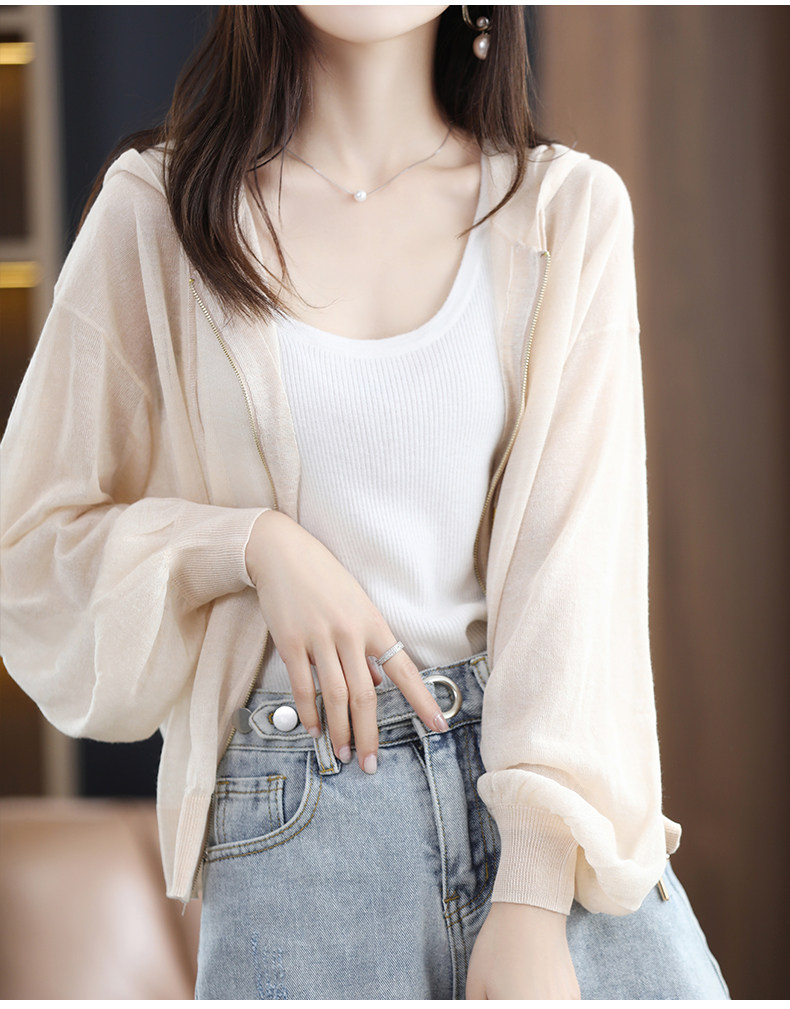 Летняя шелковая толстовка с капюшоном, трикотажный кардиган, рубашка, рукава фонарики, оверсайз
