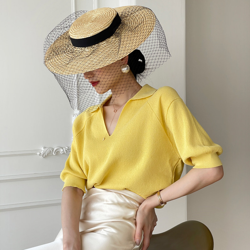 Трикотажный летний свитер, оверсайз, свободный крой, большой размер, короткий рукав