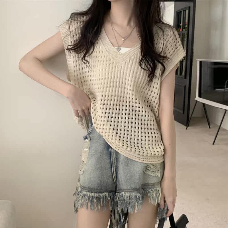 Полая вязаная блузка для женщин 2022 Лето Новый ленивый стиль свободный стиль тонкий стиль рубашка с кондиционером.