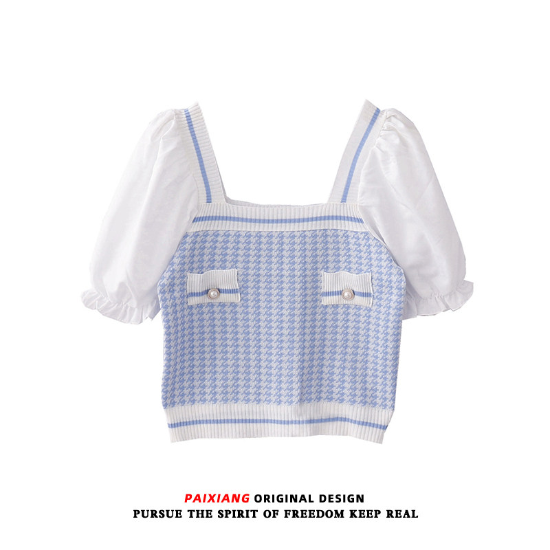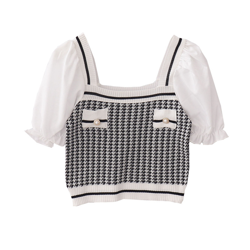 Трикотажный летний свитер, цветная тонкая приталенная короткая футболка, квадратный вырез