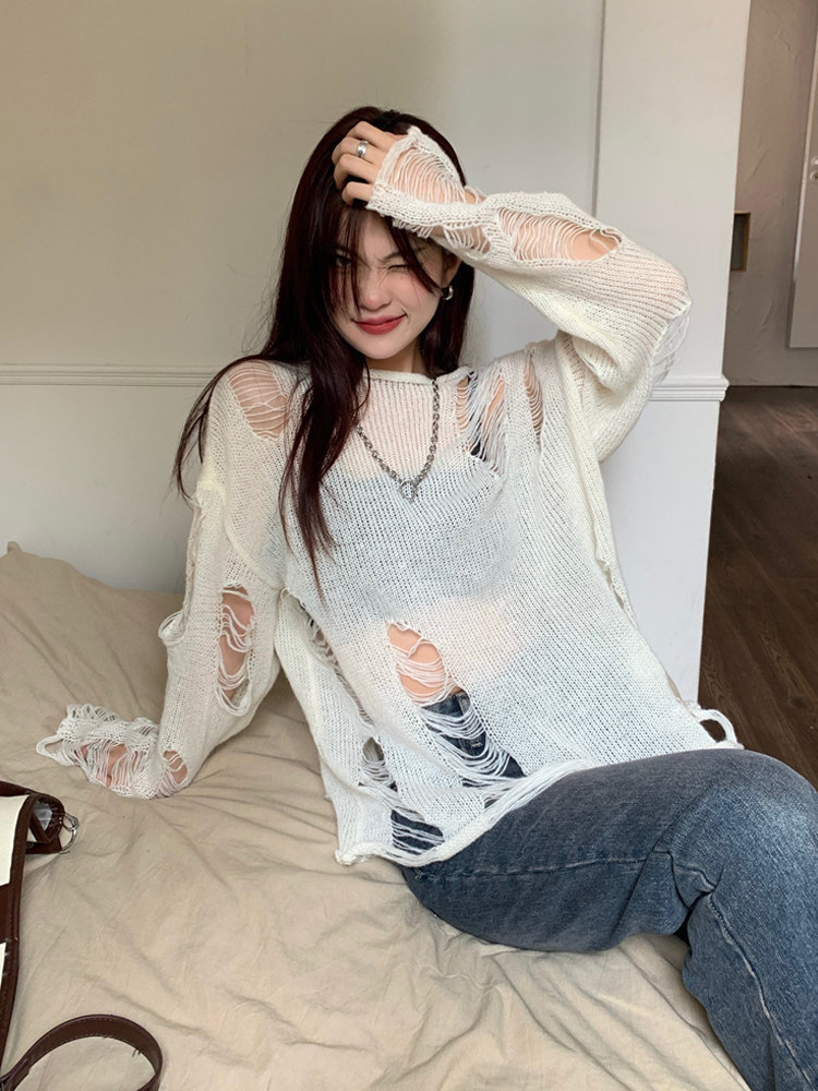 Белый лонгслив, летний тонкий трикотажный свитер
