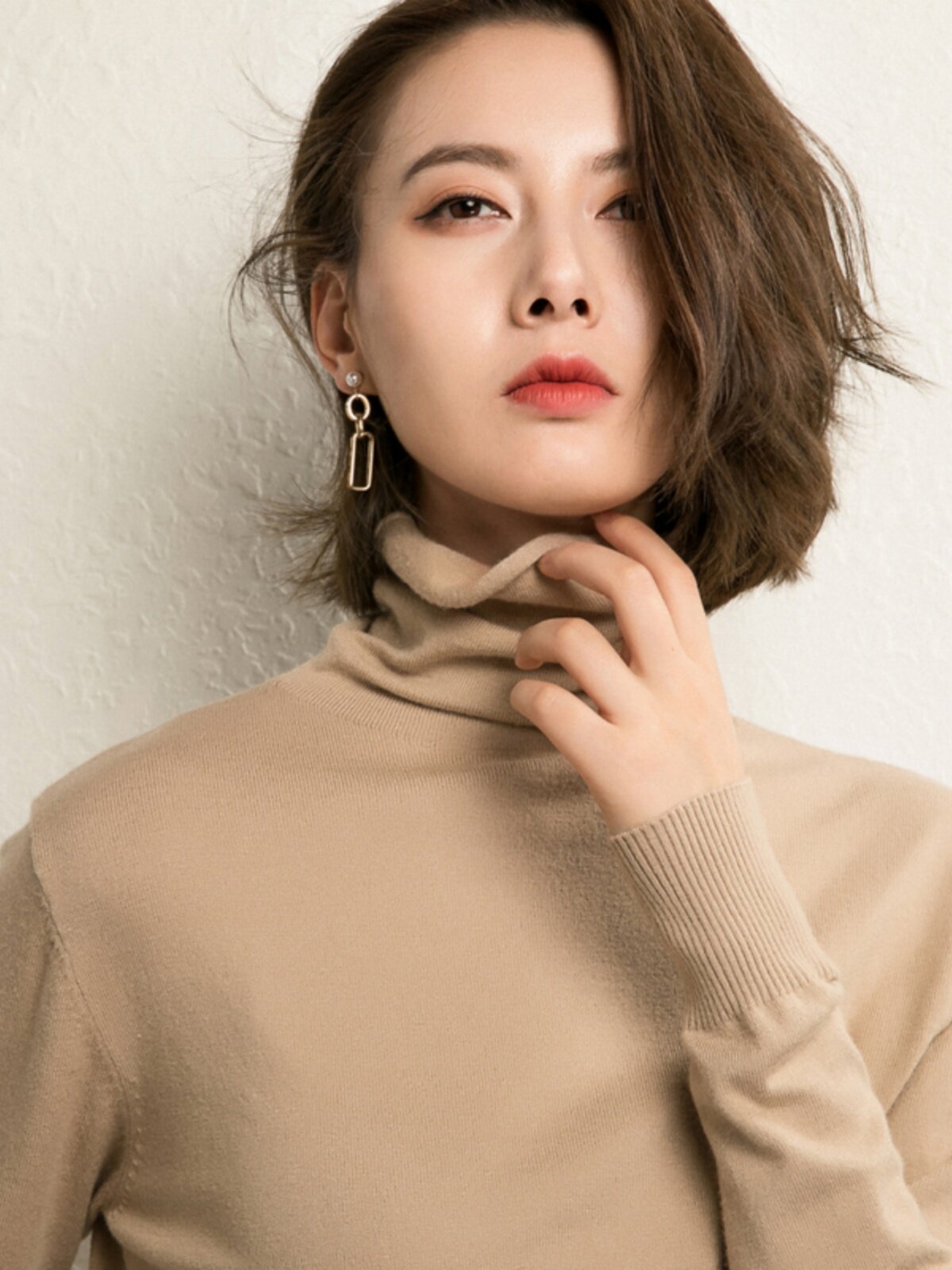 Осенний шерстяной приятный телу свитер, облегающий крой