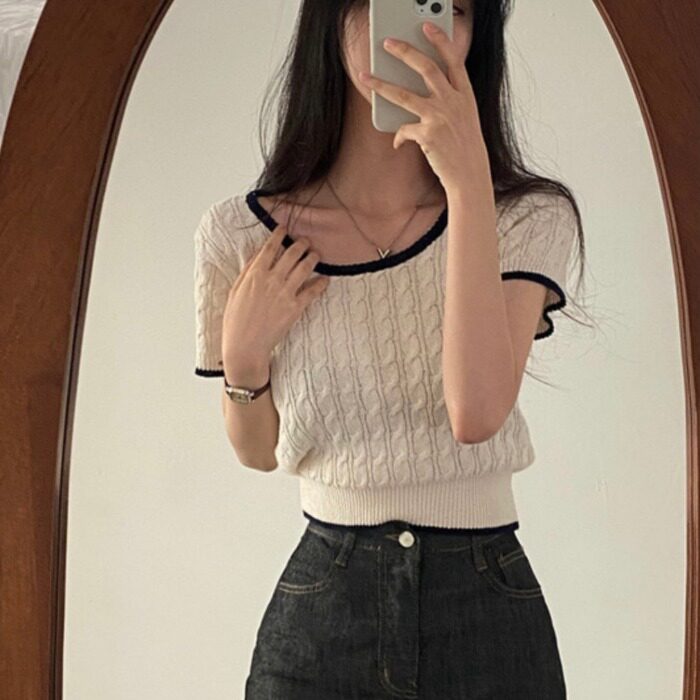 Тонкий трикотажный летний короткий свитер, в западном стиле