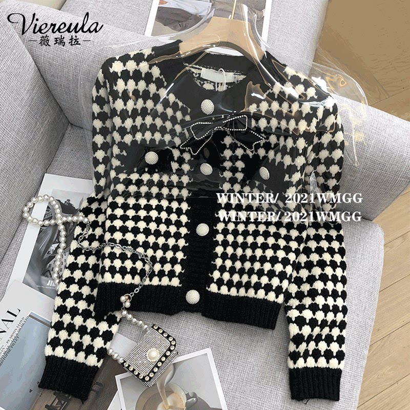 Трикотажный свитер, демисезонный кардиган, короткая утепленный лонгслив, куртка с ромбовидным узором, в стиле Шанель, подходит для подростков, оверсайз