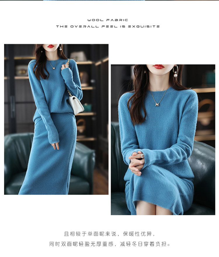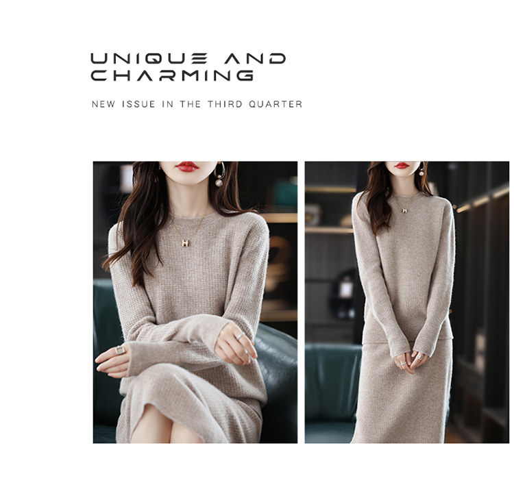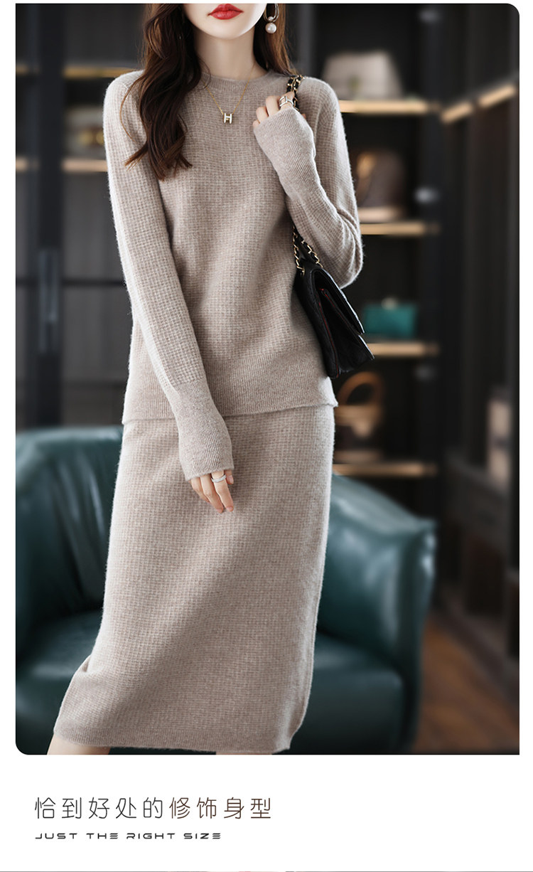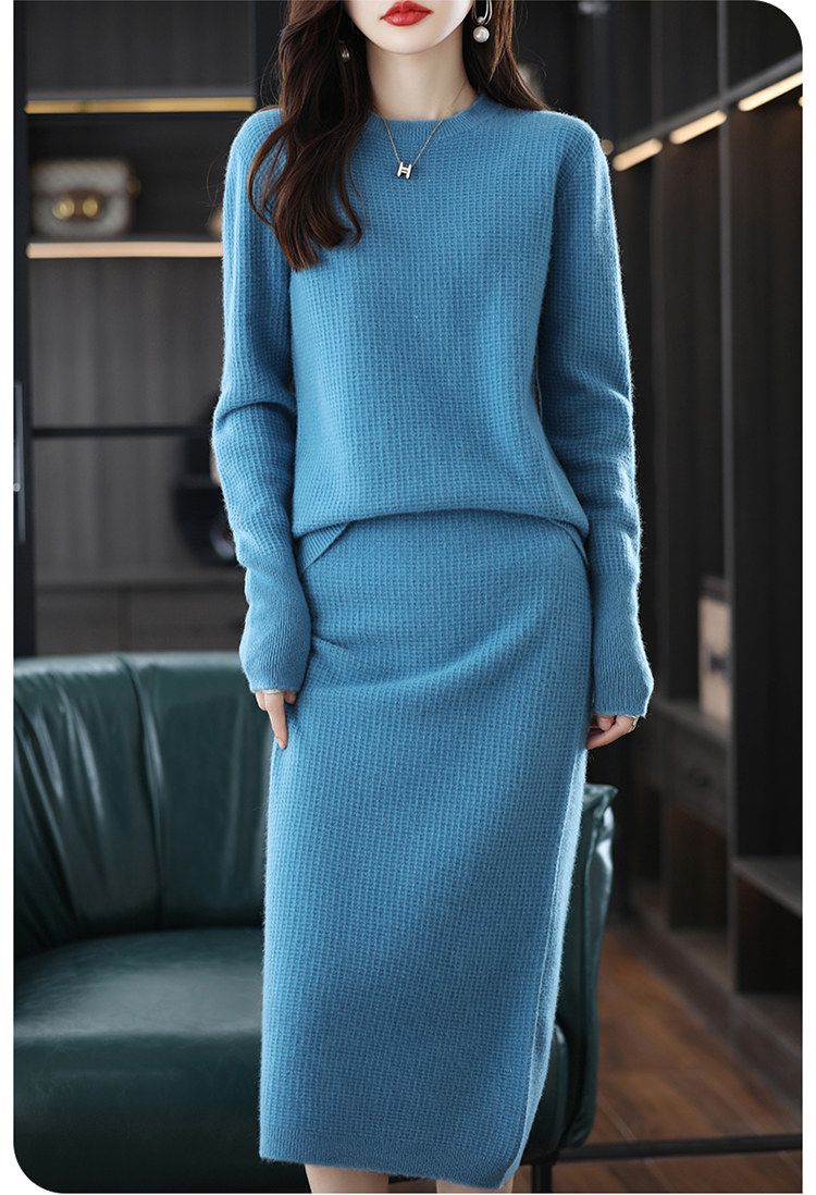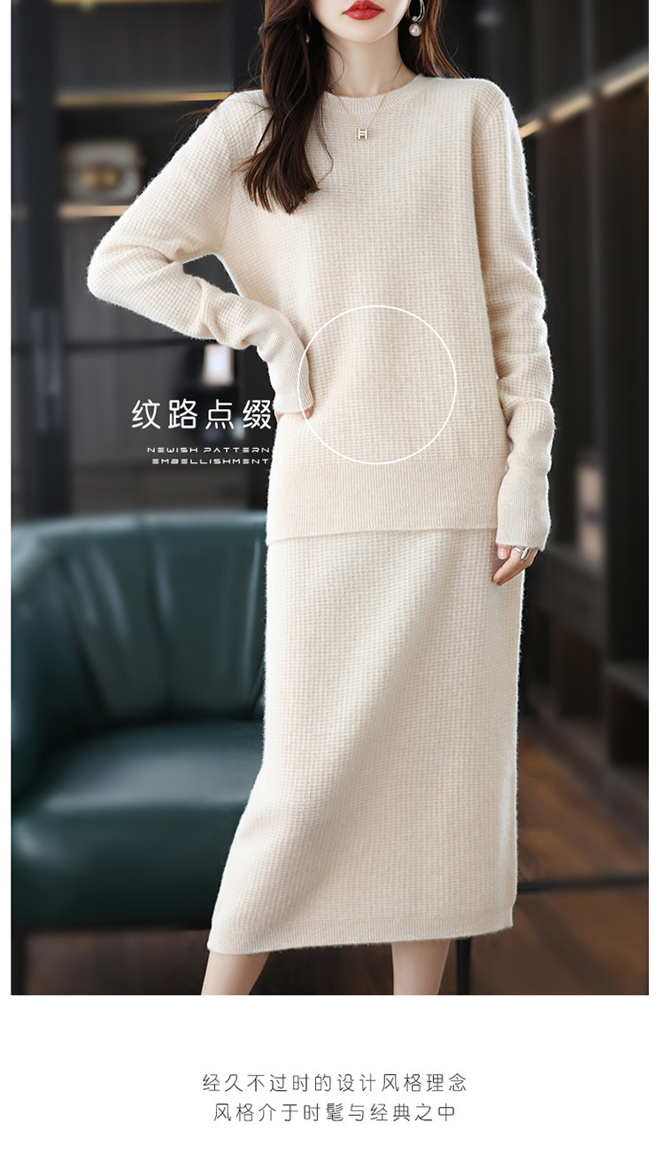 Демисезонный кашемировый свитер с круглым воротником, шерстяной трикотажный комплект, юбка