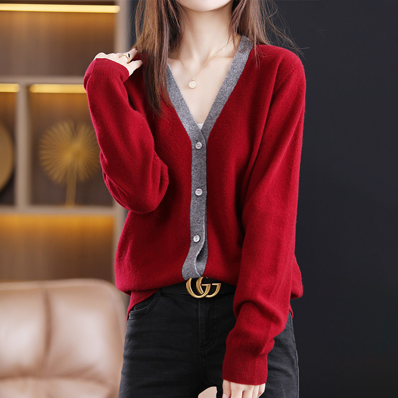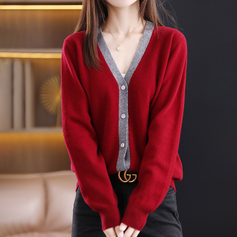 Осенний кашемировый трикотажный кардиган, шерстяная ретро куртка, V-образный вырез, в западном стиле