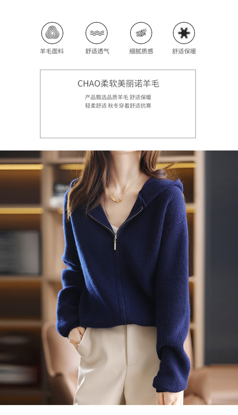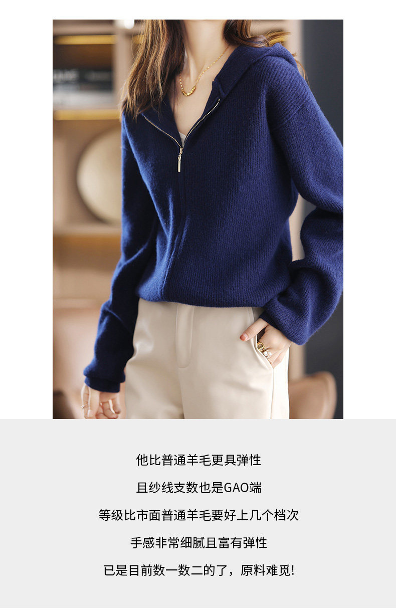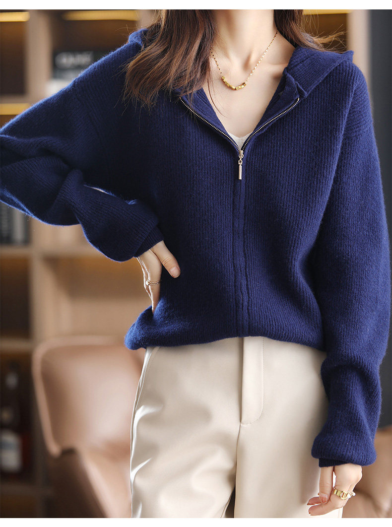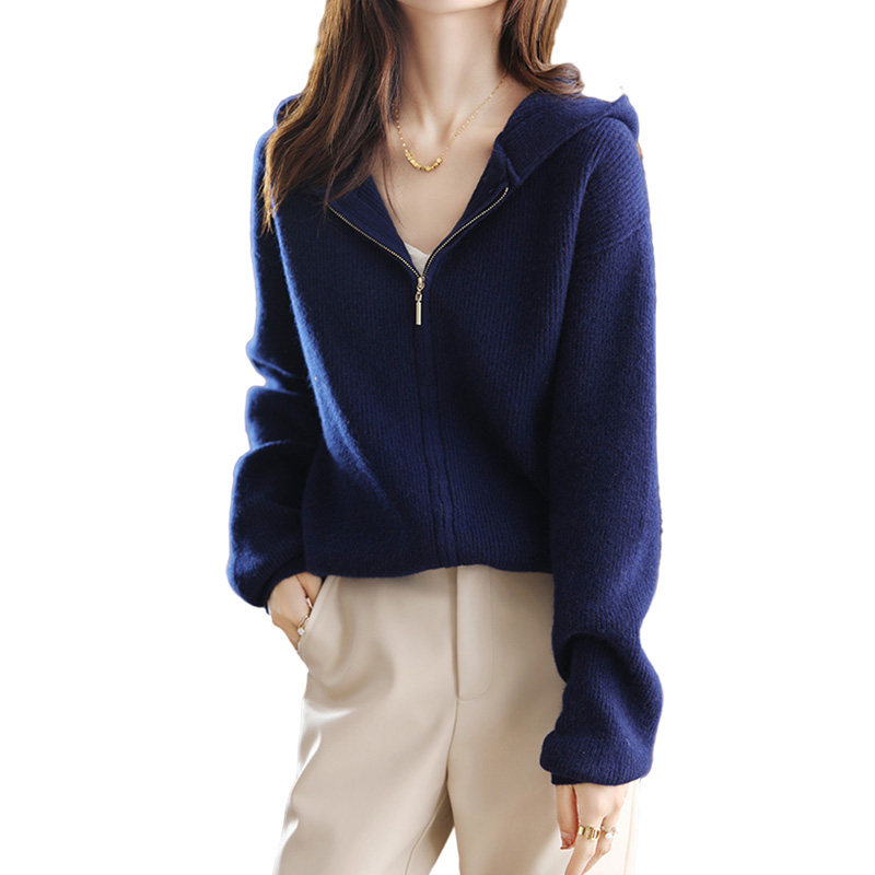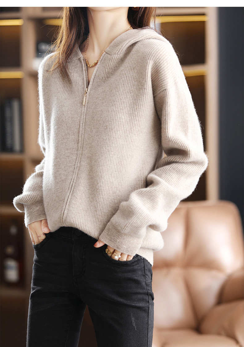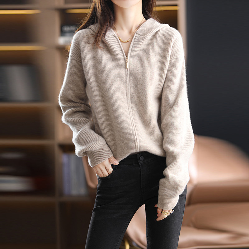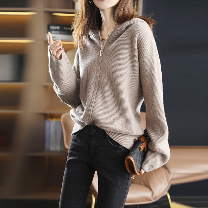 Демисезонный трикотажный кардиган с капюшоном, шерстяная куртка с молнией, свитер, свободный крой