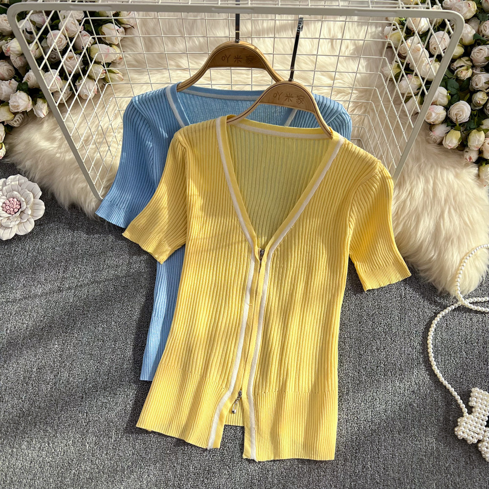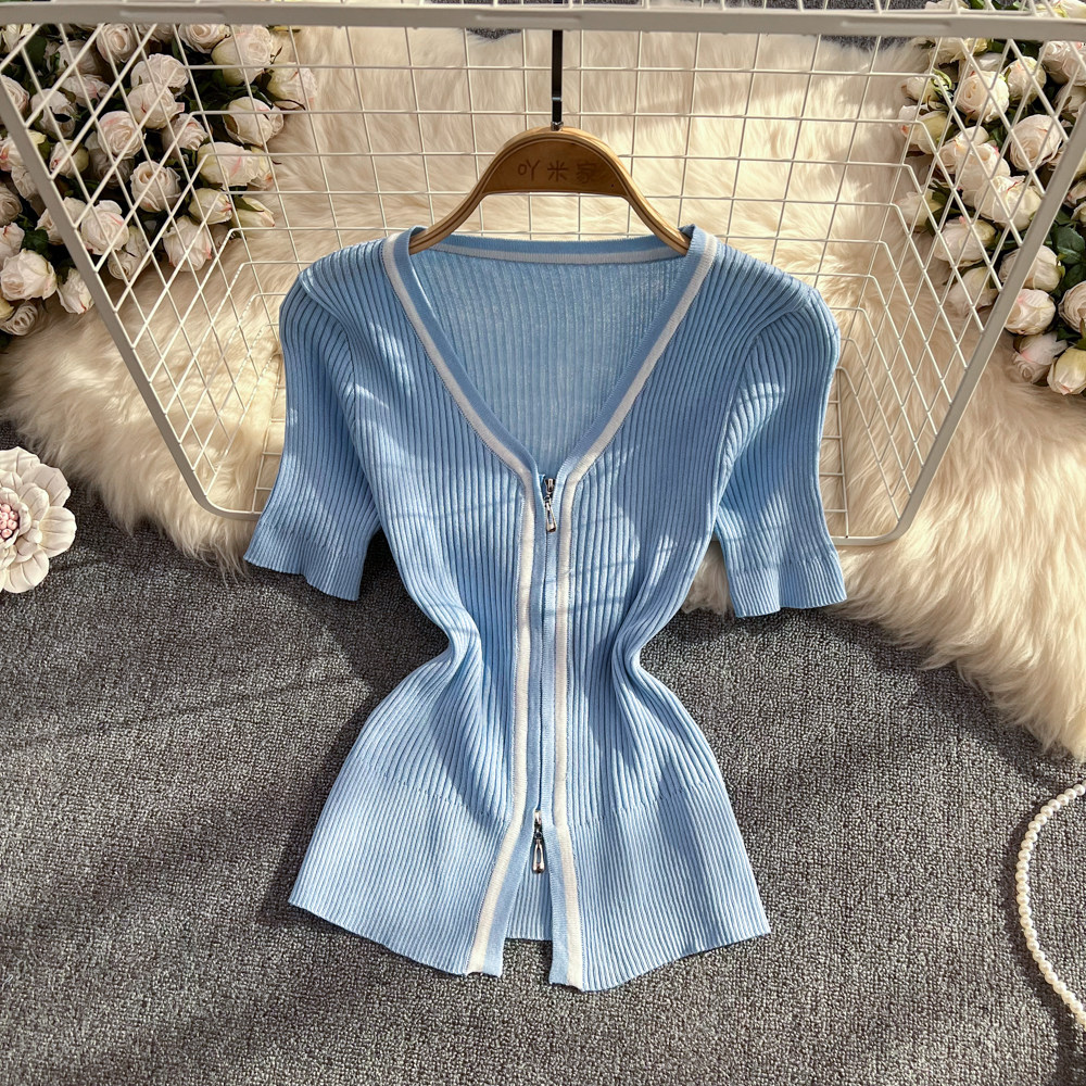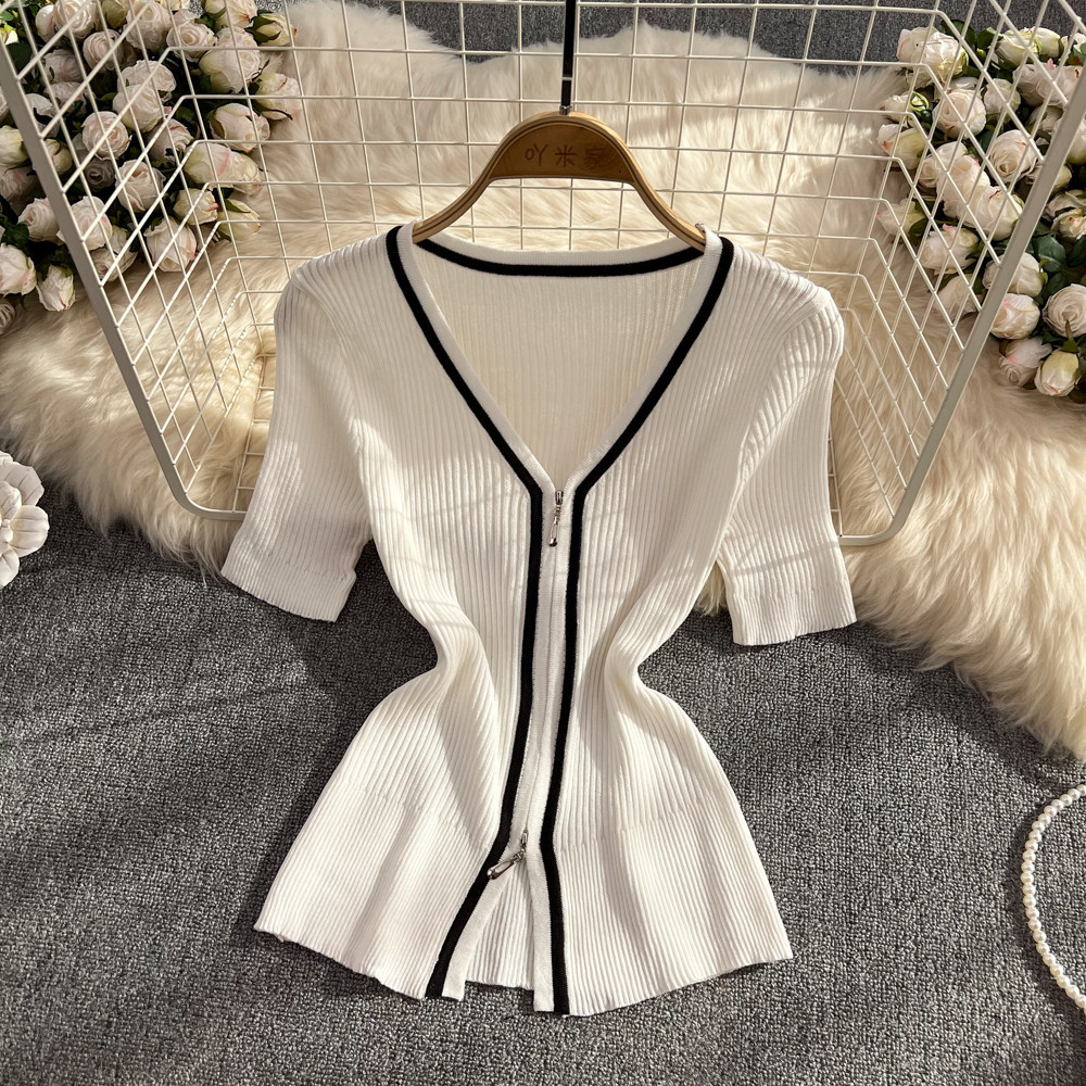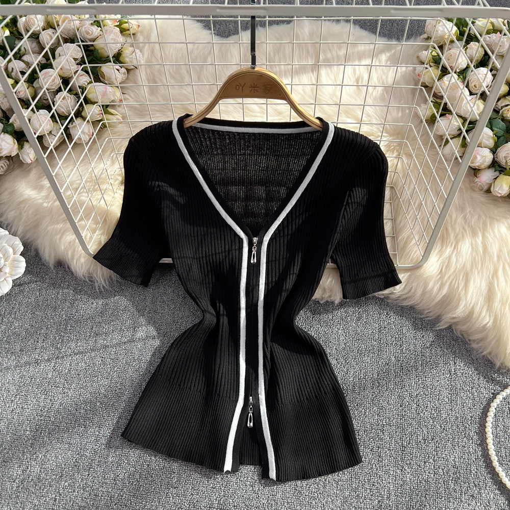 Летняя тонкая трикотажная футболка с молнией, кардиган, одежда для защиты от солнца, эластичная куртка, короткий рукав, облегающий крой, защита от солнца, большой размер