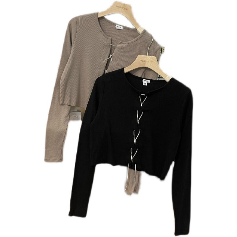 Сексуальная трикотажная цепь, короткий лонгслив, комплект