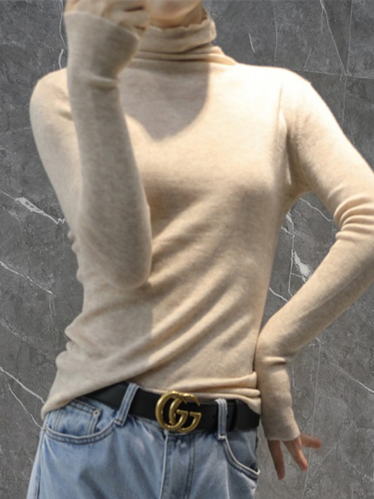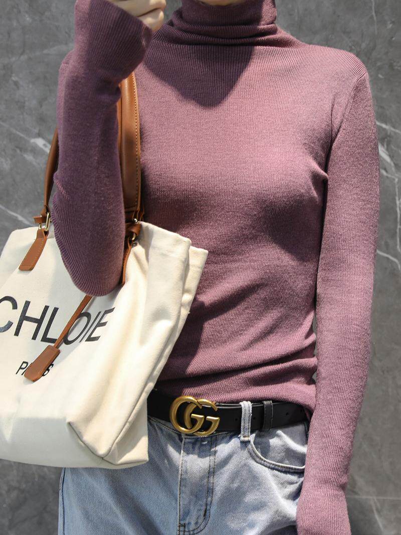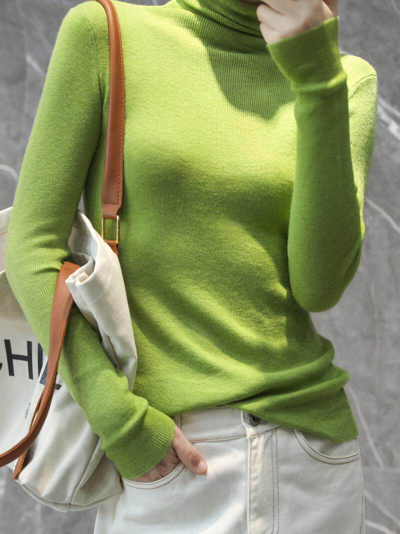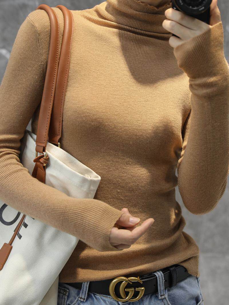 Кашемировый ультратонкий шерстяной базовый трикотажный осенний свитер, высокий воротник, облегающий крой