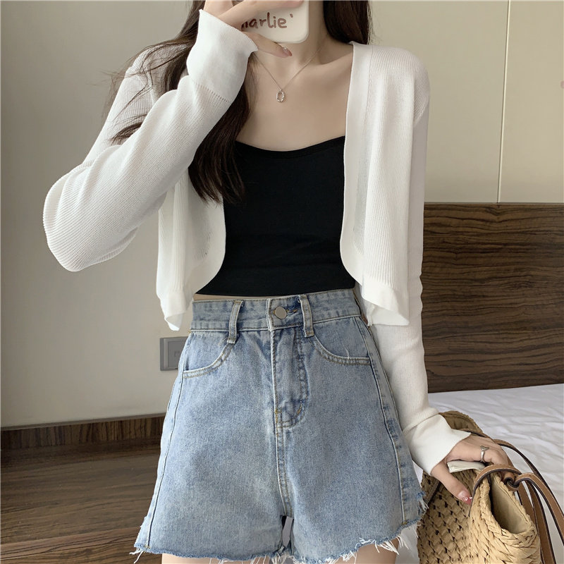 Жилет, летняя накидка, платье-комбинация, шелковый тонкий кардиган, французский стиль