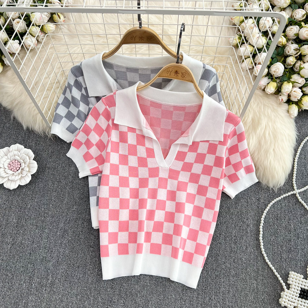 Модный трикотажный свитер, летняя футболка с коротким рукавом, короткая футболка polo, высокая талия