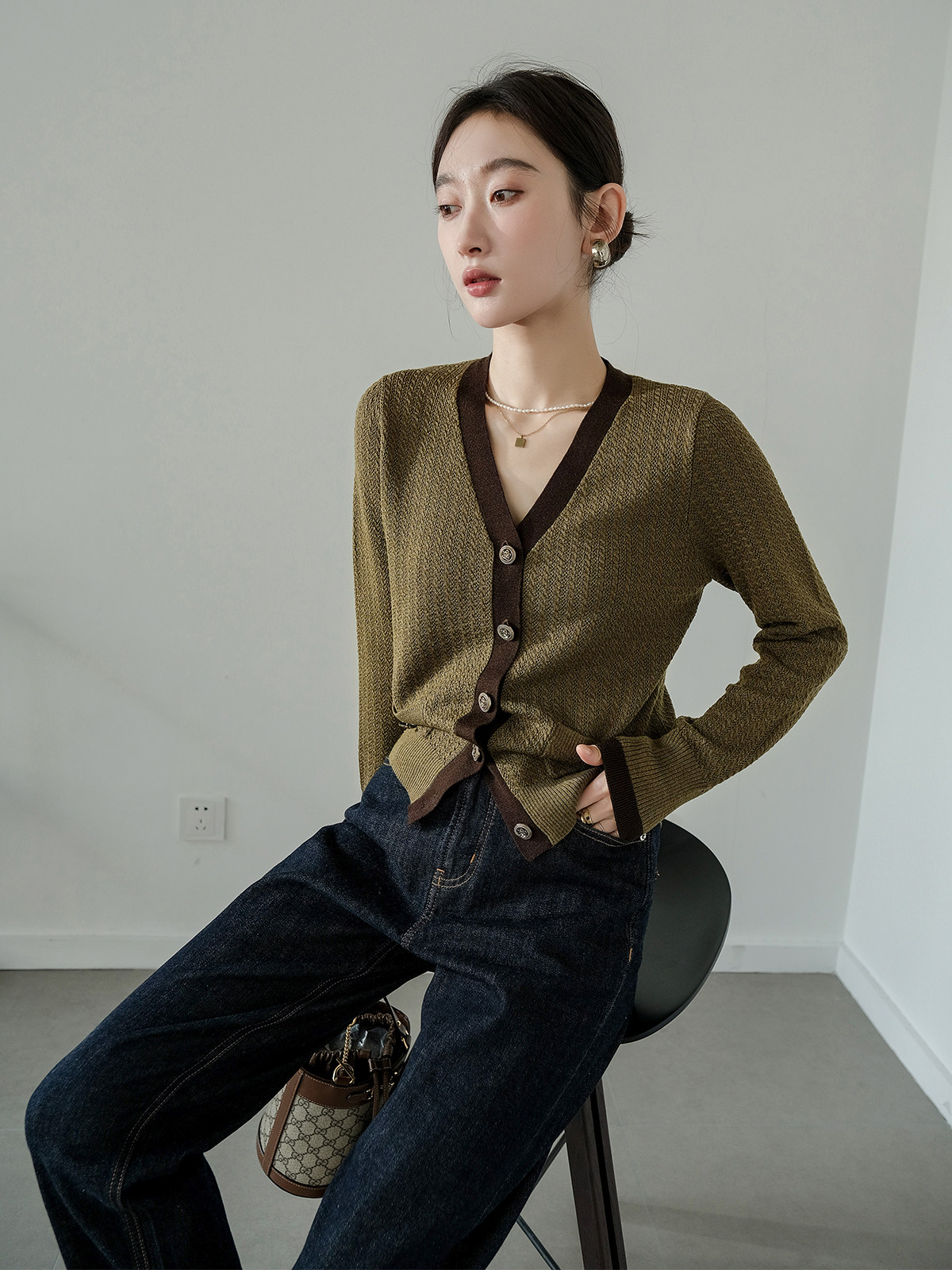 Новая Олимпиада из тыквенной долины Настоящая шелковая шерсть маленькая ладана контрастная скрученная сплетенная ткани Вертикальные и горизонтальные линии представляют собой элегантную уверенность Роскошные карты/текстура Gao Уровень/Формирование классической моды Вата вата+шелк шелк шелк шелк,Tian управлял органической комбинацией волокна