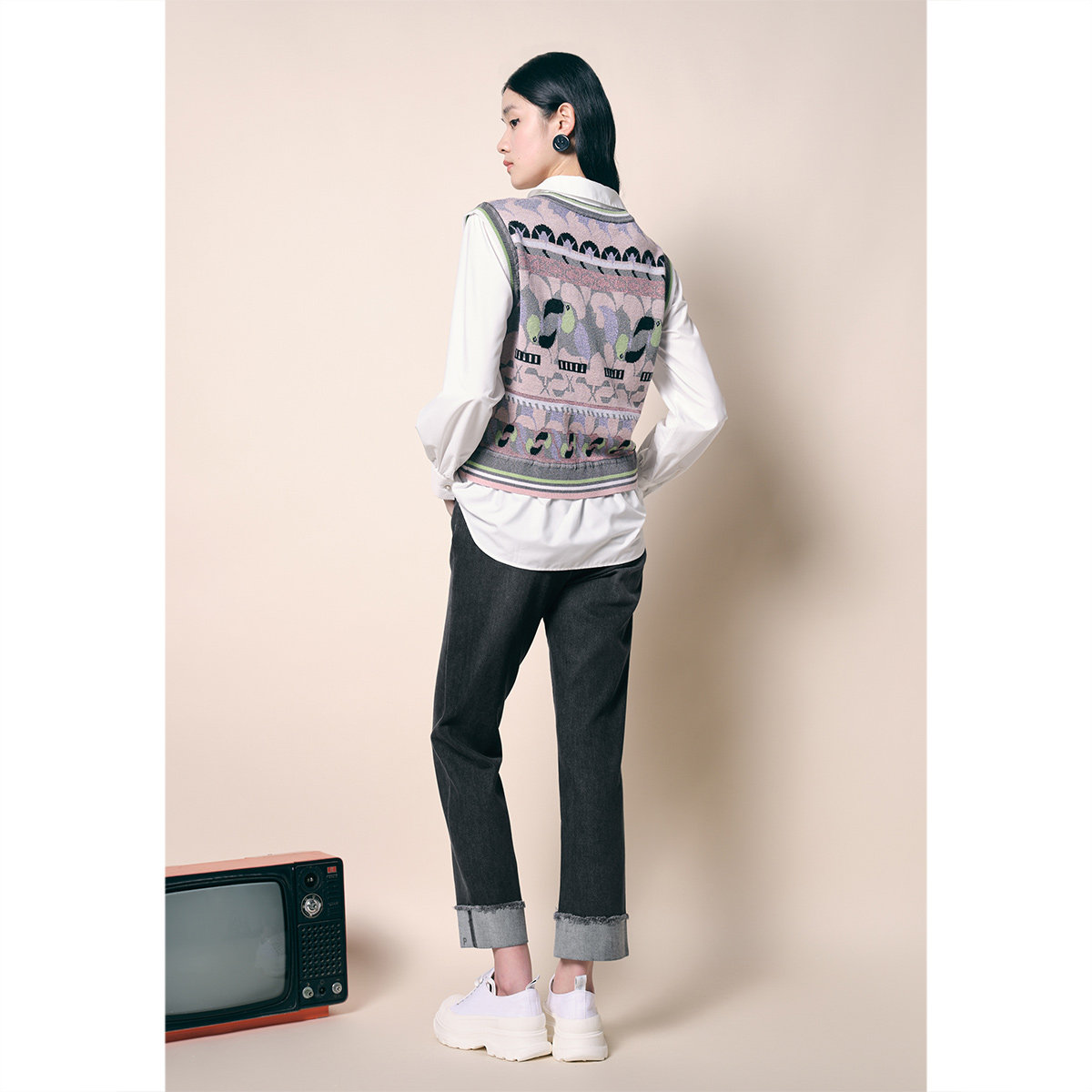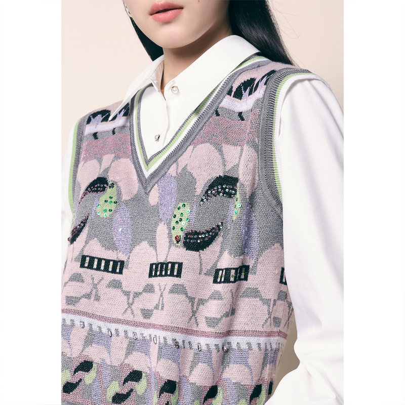 Осенний ретро трикотажный жилет без рукавов, коллекция 2022, оверсайз, V-образный вырез