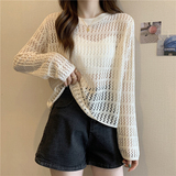 Трикотажный свитер, одежда для защиты от солнца, шелковый осенний шифоновый лонгслив