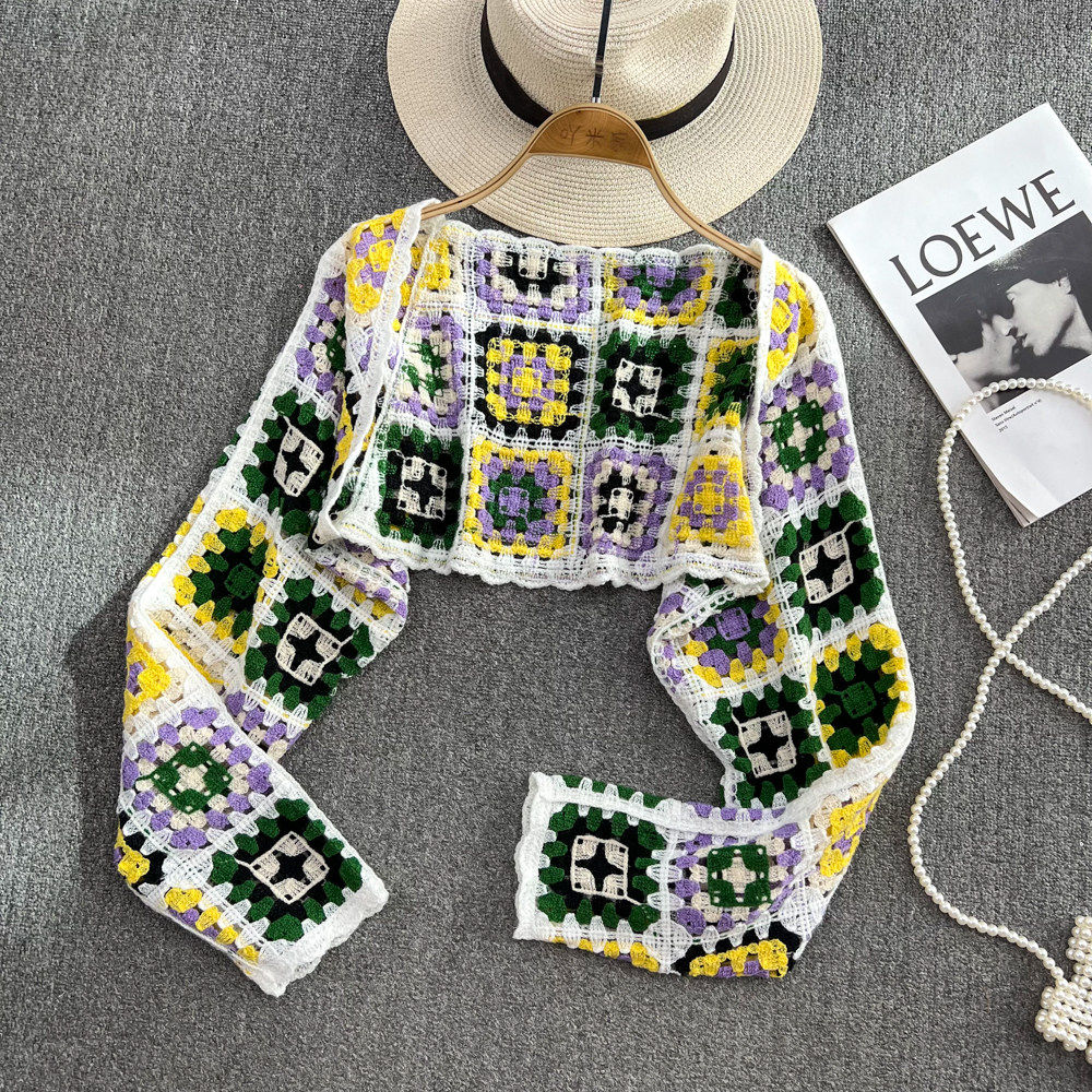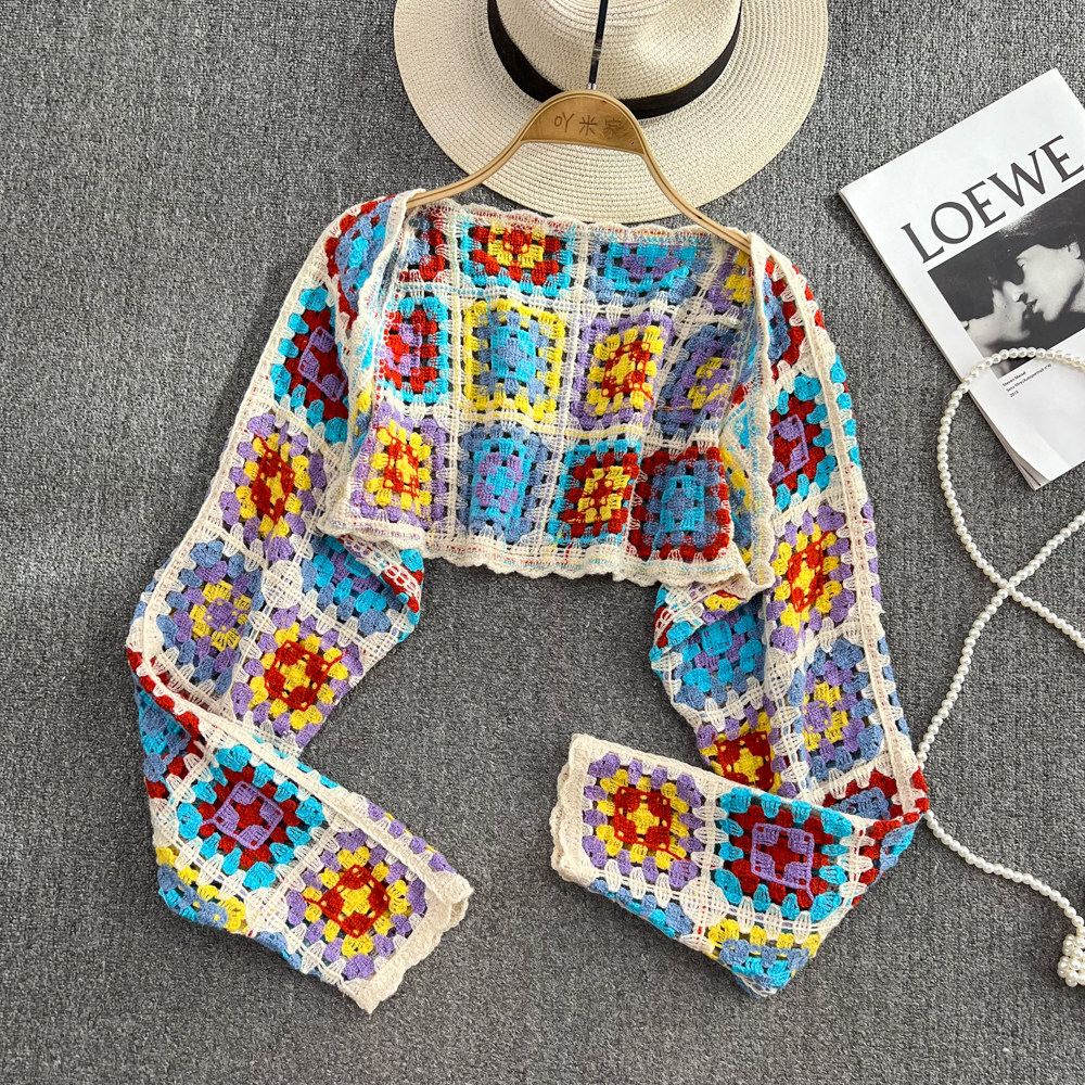 Летняя ретро этническая трикотажная накидка, куртка, лонгслив, этнический стиль, в западном стиле