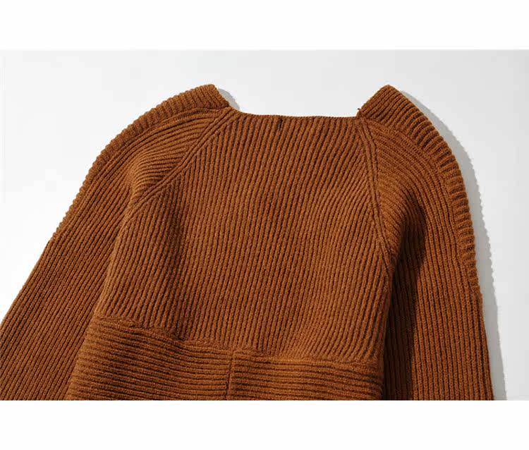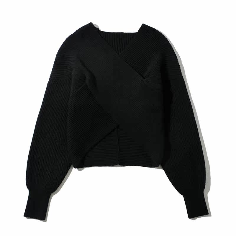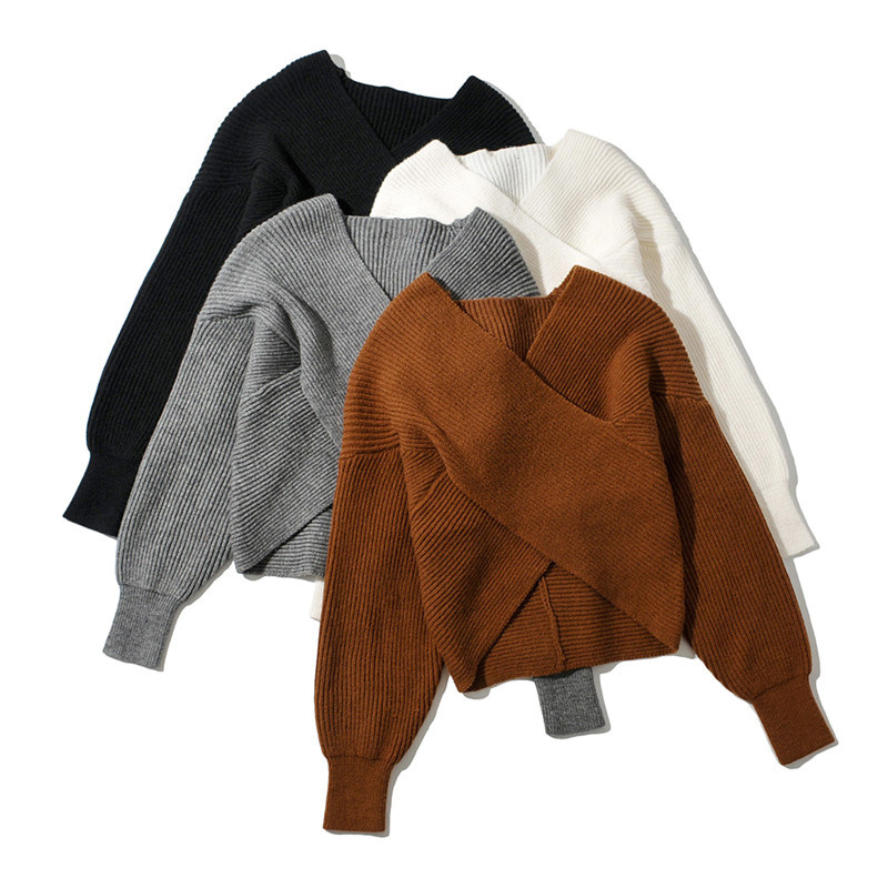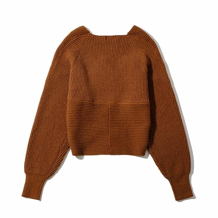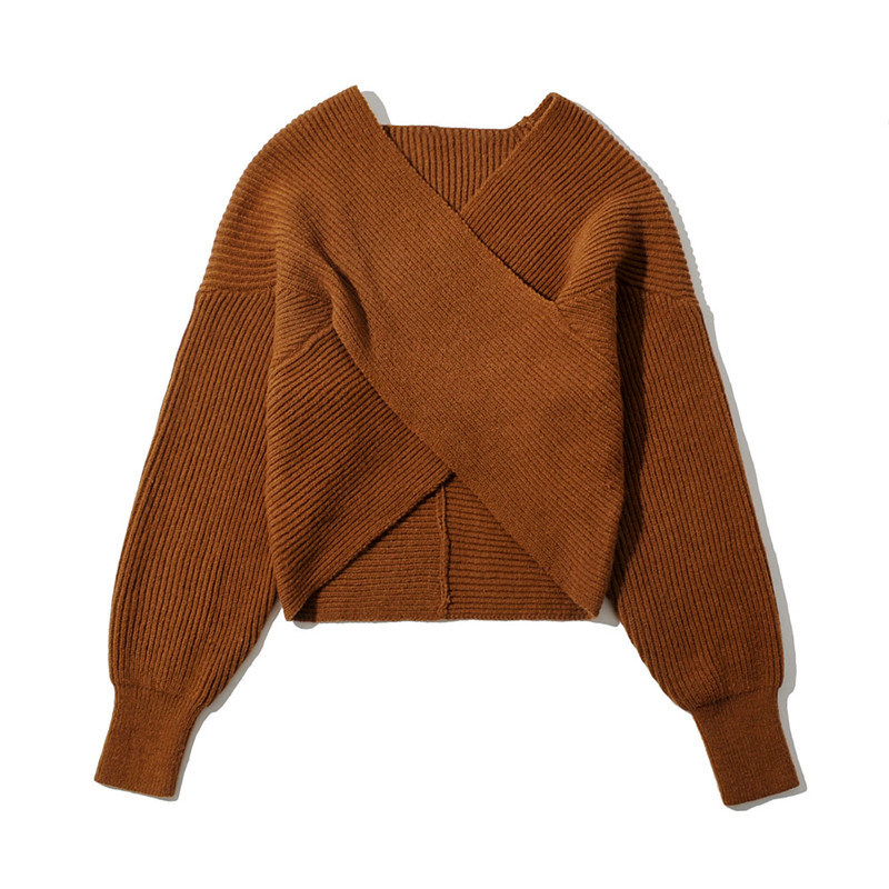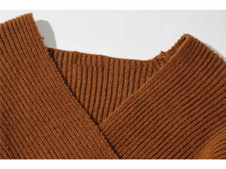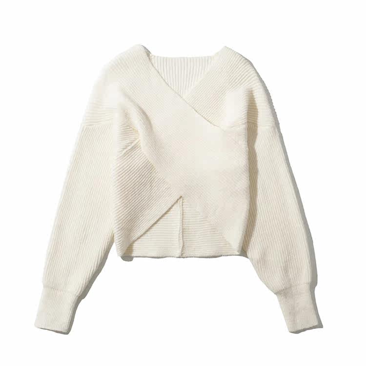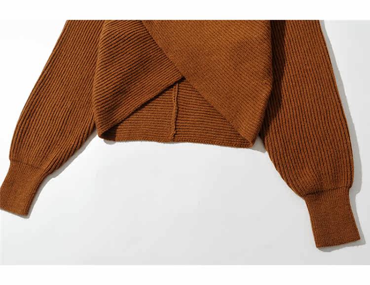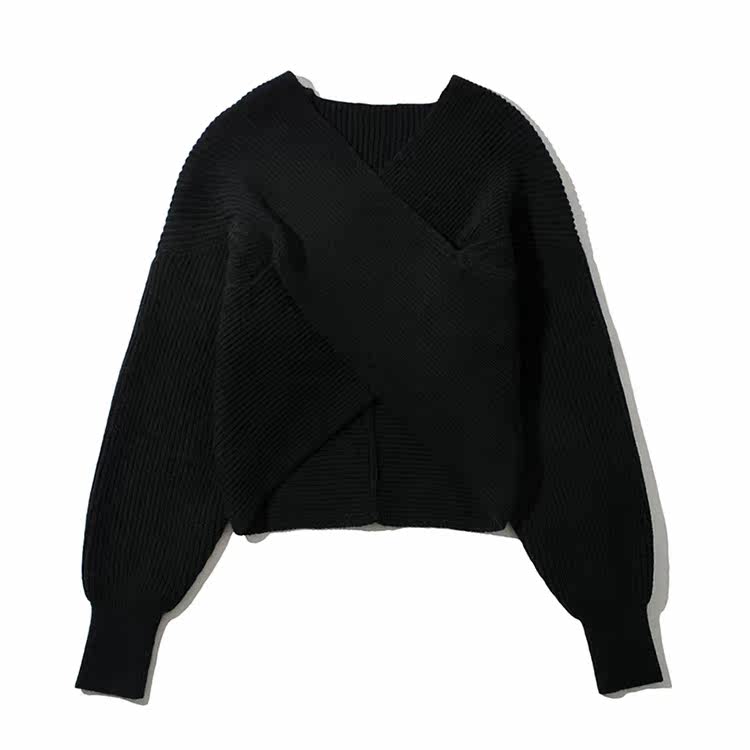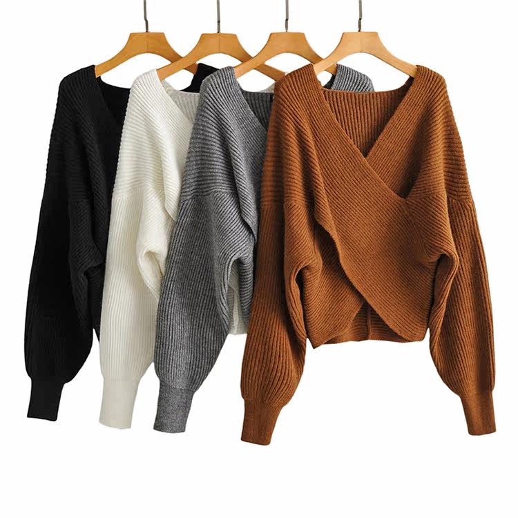 Трикотажный осенний дизайнерский базовый приятный телу короткий свитер, тренд сезона, V-образный вырез, свободный крой