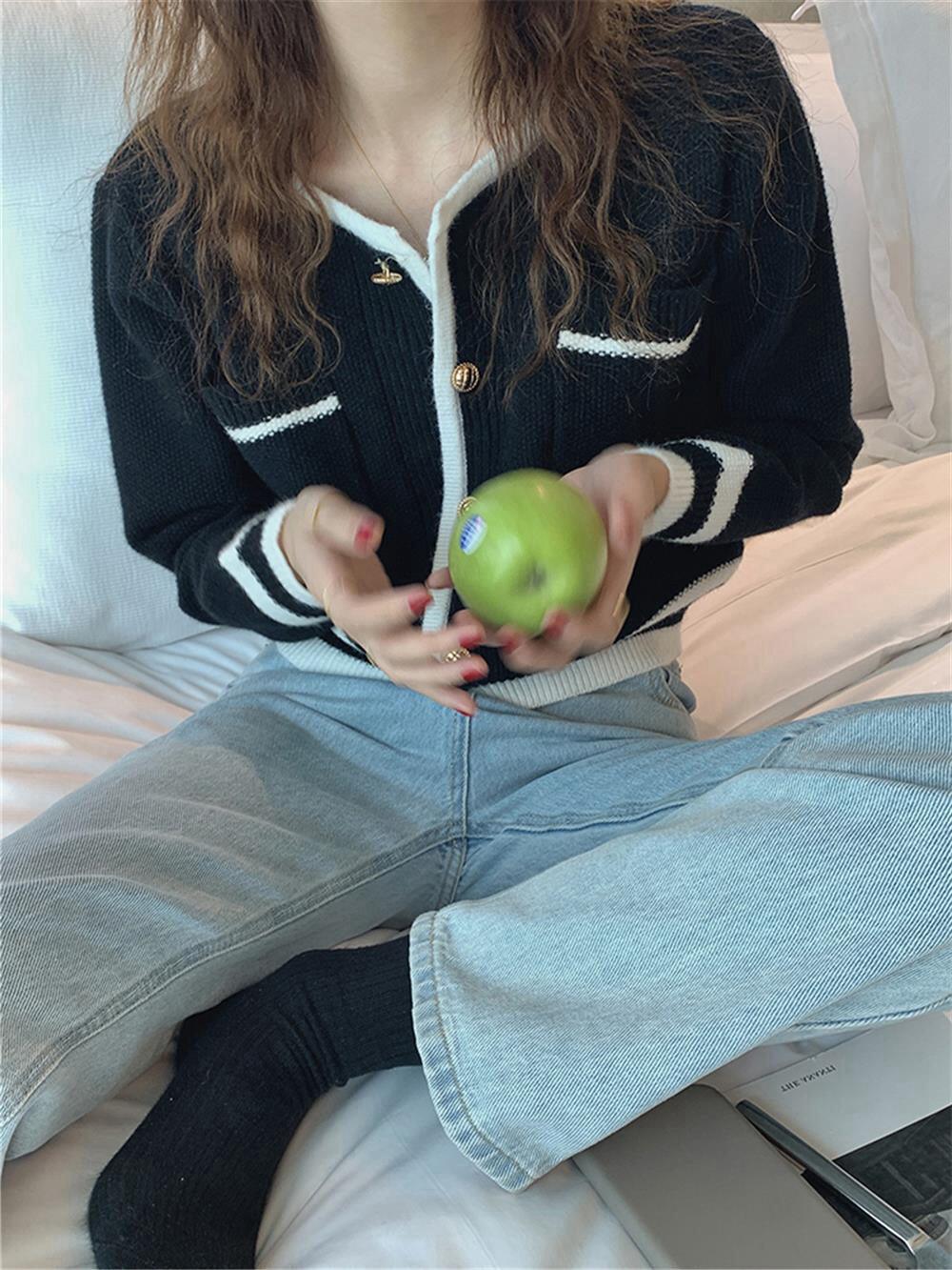 Свитер, куртка, трикотажный демисезонный дизайнерский короткий кардиган, свободный крой, тренд сезона