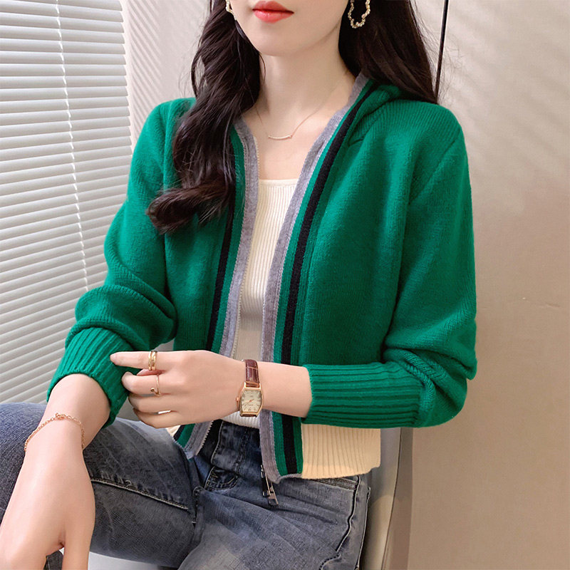 Трикотажный кардиган, осенняя куртка, свитер для отдыха с капюшоном с молнией, подходит для подростков, коллекция 2022