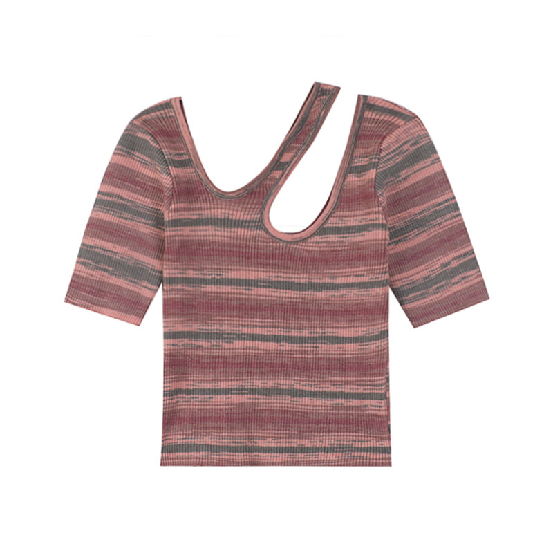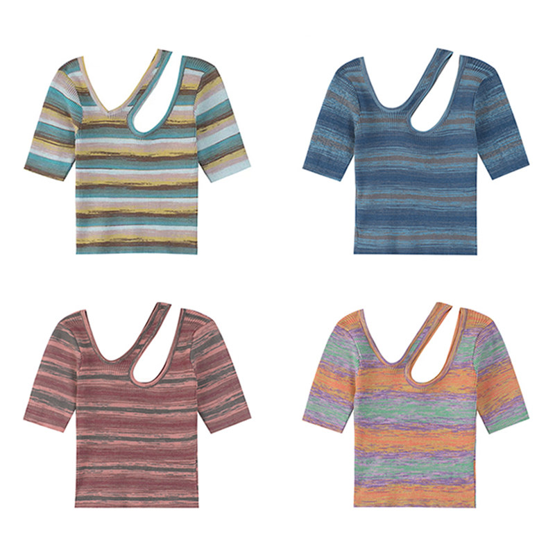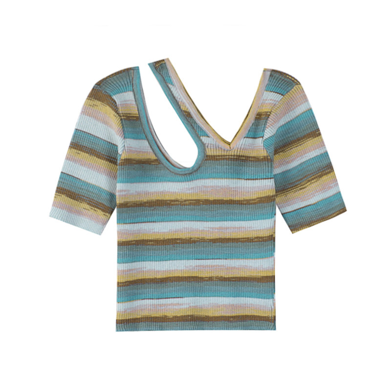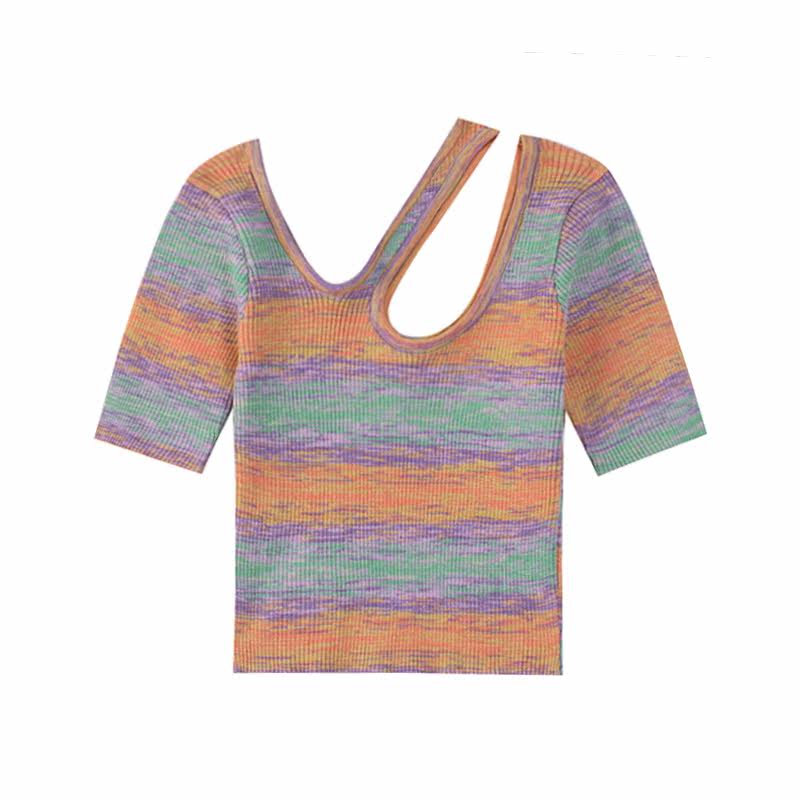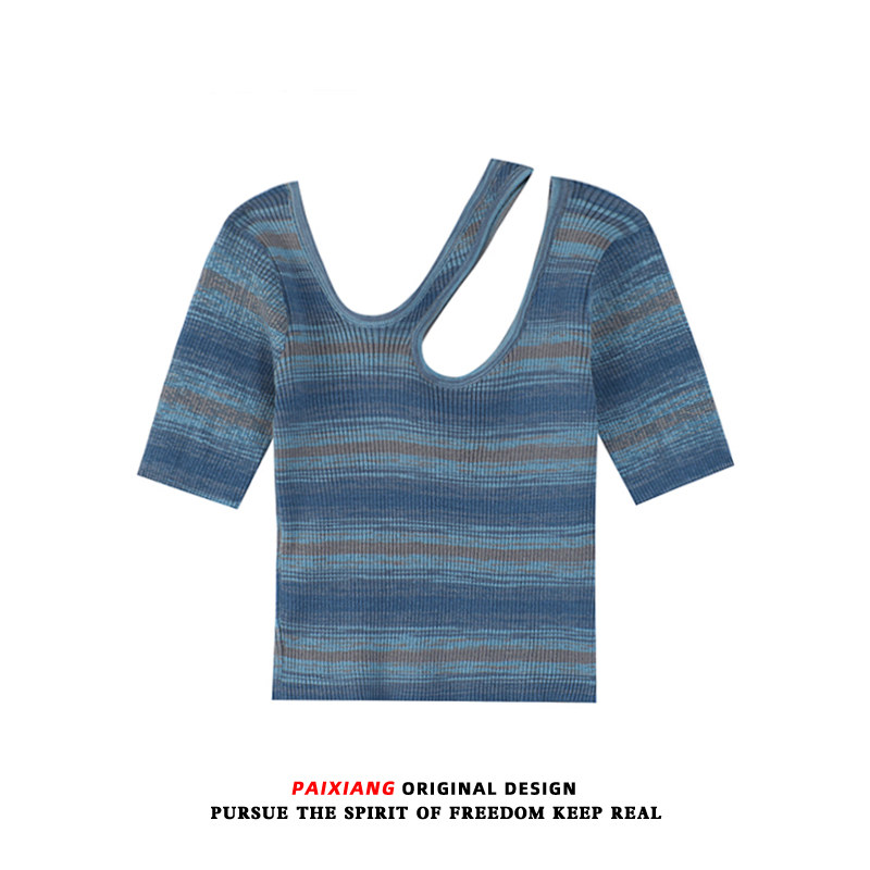 Трикотажный летний свитер, тонкая дизайнерская короткая футболка с коротким рукавом, тренд сезона, облегающий крой