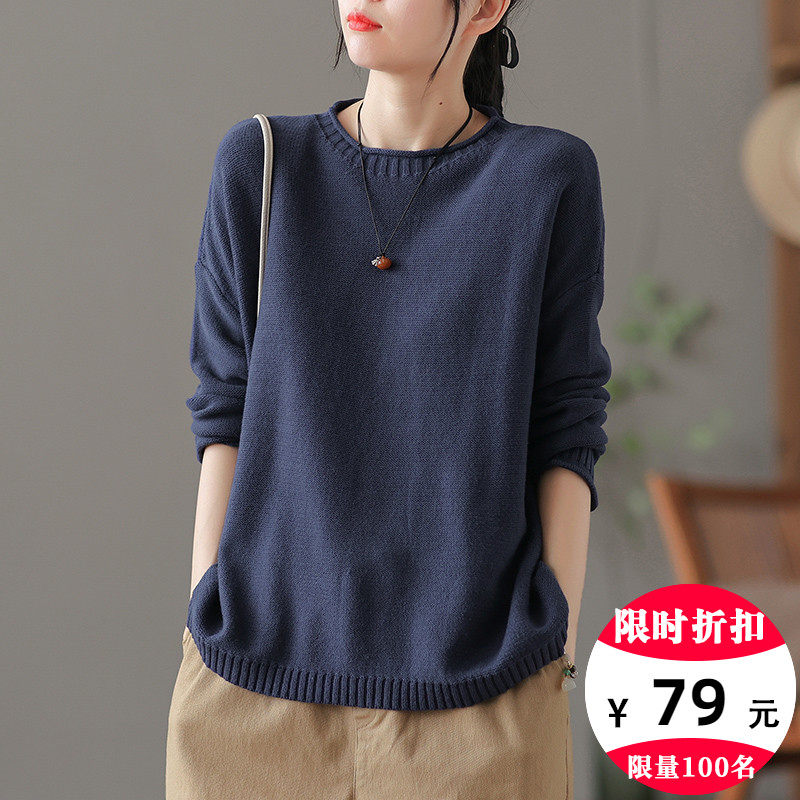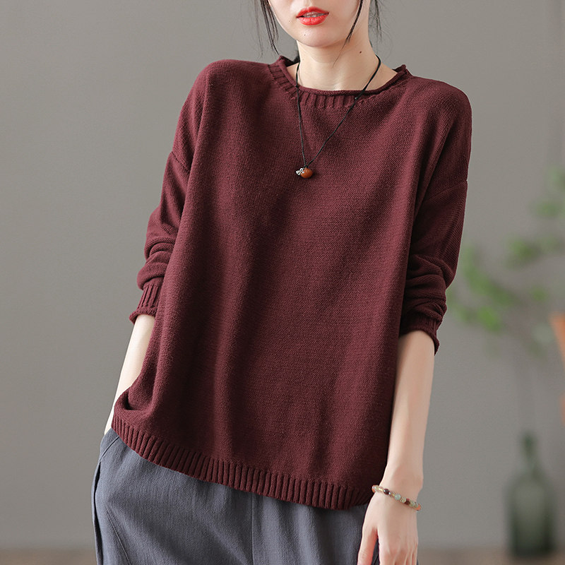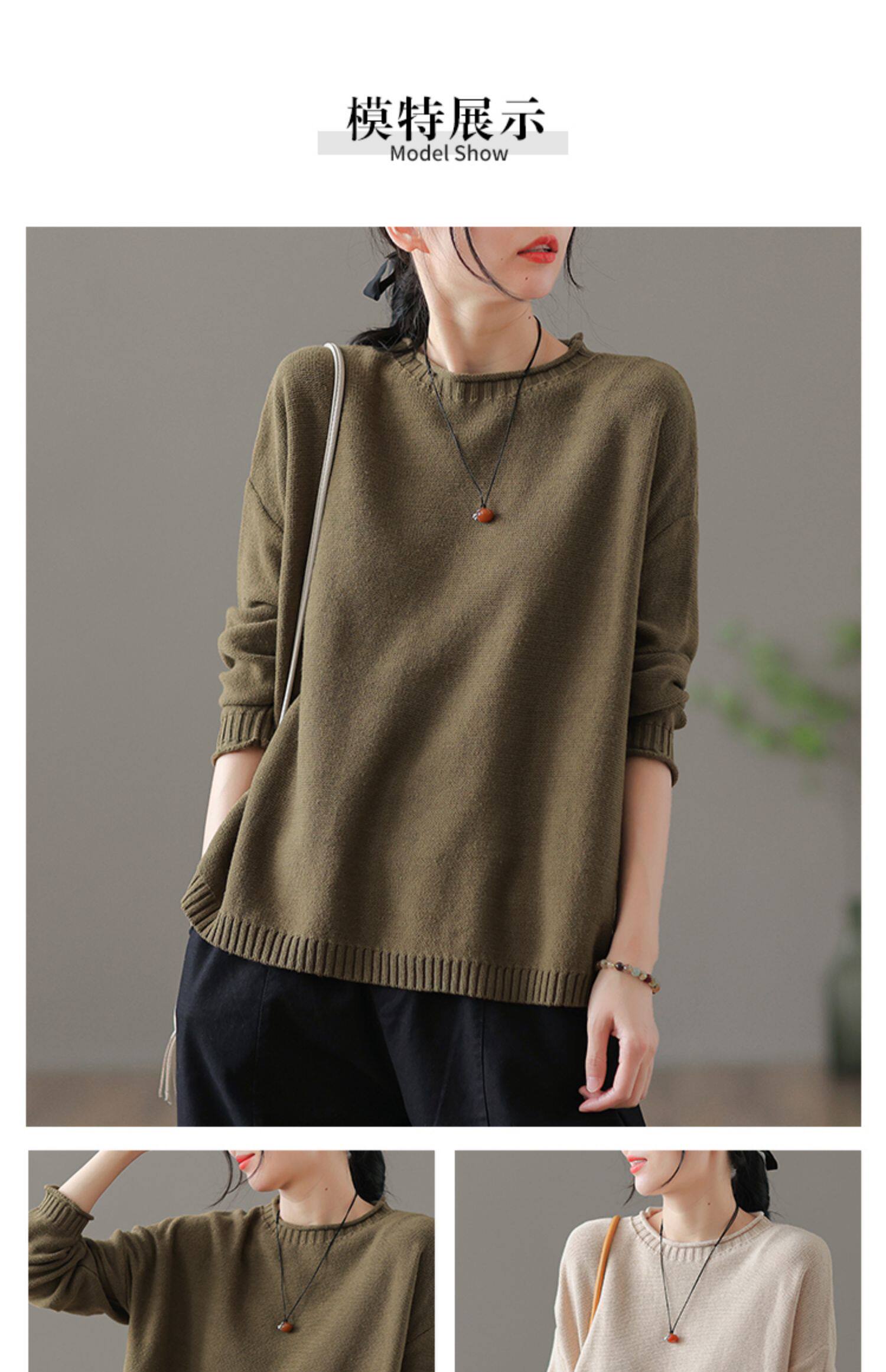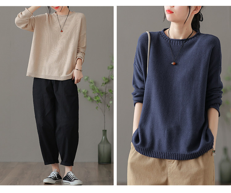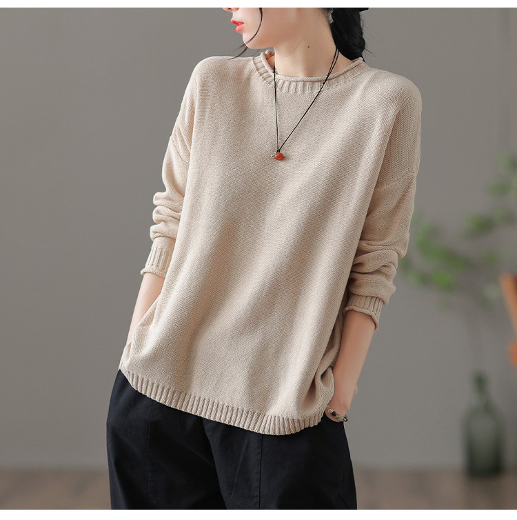 Трикотажный осенний свитер с круглым воротником, базовая осенняя куртка, оверсайз
