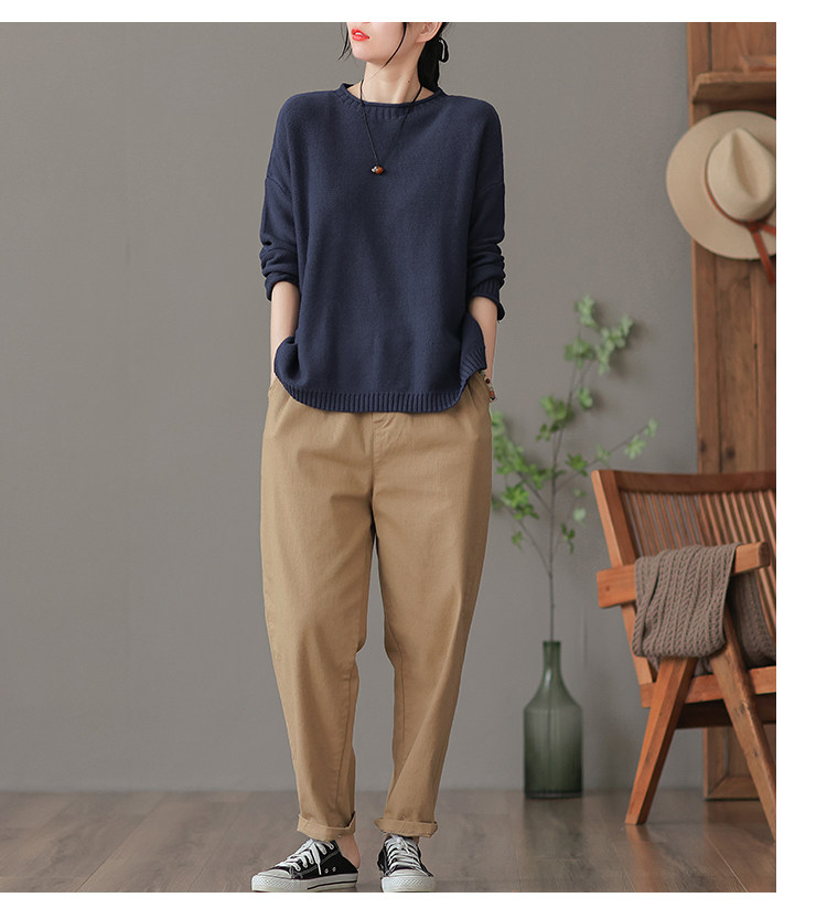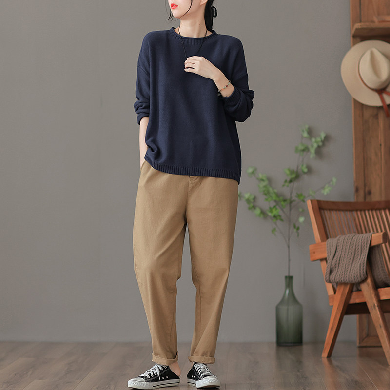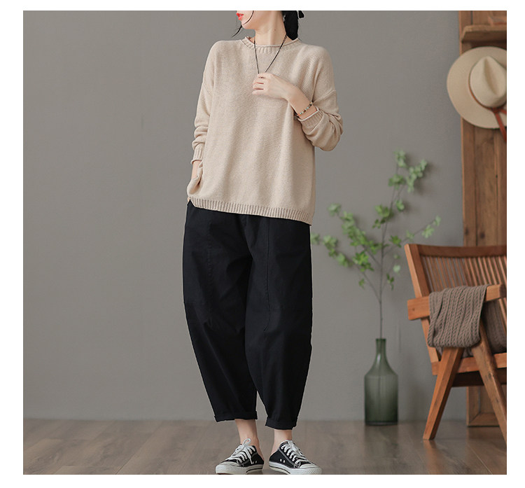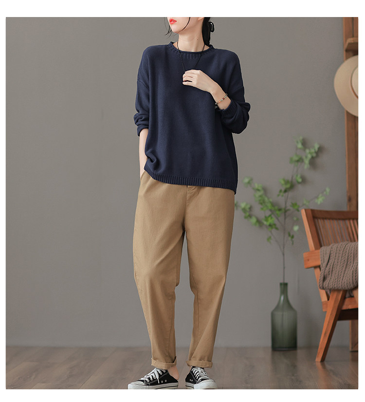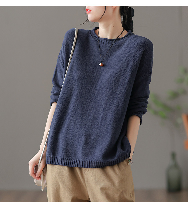 Трикотажный осенний свитер с круглым воротником, базовая осенняя куртка, оверсайз